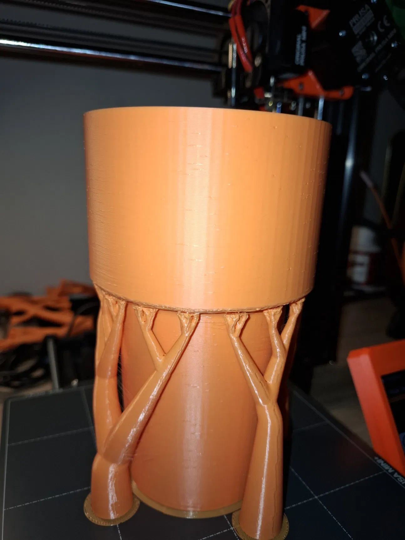 Thiết kế ưu tiên độ bền, đơn giản và tính tiện dụng hằng ngày. Thành dày và đế đặc giúp hạn chế lắc/rung hoặc bị nghiêng, kể cả khi bình đầy nước. Adaptor được khuyến nghị in theo phương dựng đứng và đã thử nghiệm thành công với PLA+ cùng organic supports.