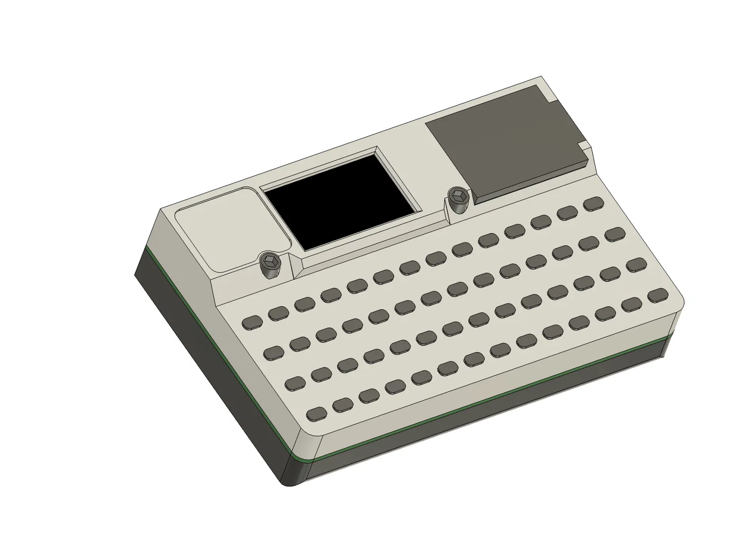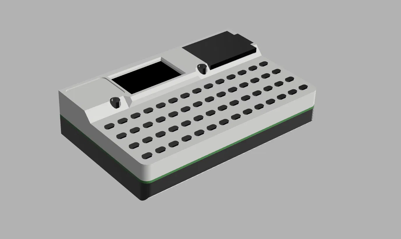 Mô hình tham chiếu cơ khí (dummy) của Cardputer, dùng để thiết kế enclosure, mount và phụ kiện. Thể hiện kích thước tổng thể, các đặc điểm ngoài; không phải case để in, giúp kiểm tra clearance và tỉ lệ.