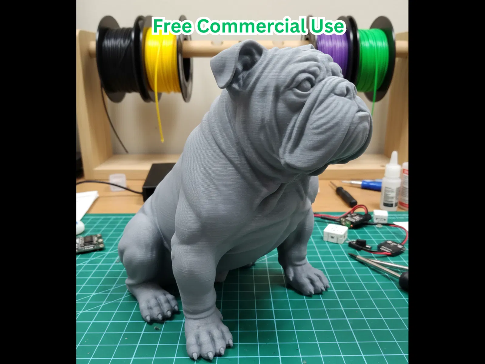 Mẫu tượng Bulldog ngồi phong cách realistic, nhấn mạnh dáng cơ bắp đặc trưng nhưng vẫn lược giản chi tiết để in sạch, dễ ra form. Vân layer nhìn rõ cho thấy đây là sản phẩm in thật, hợp trưng bàn và decor.