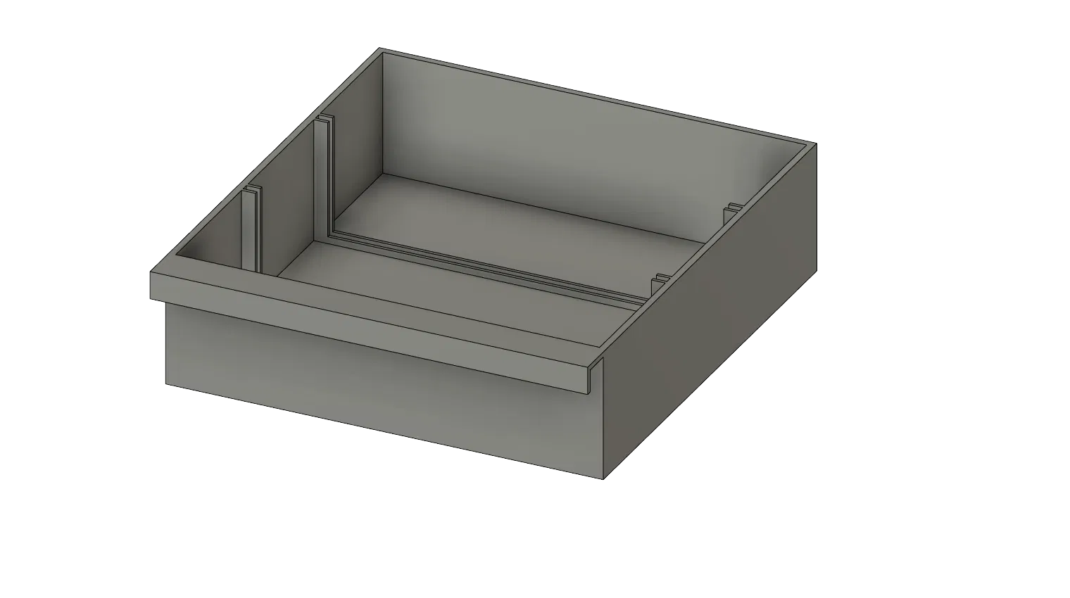 Các ngăn kéo trượt đi kèm được thiết kế để vận hành mượt trong khung, mỗi ngăn có tay nắm tích hợp ngay mặt trước để lấy đồ nhanh. Bên trong ngăn kéo cũng có các vách chia nhỏ (internal dividers) tinh tế, phù hợp để phân ô đồ lặt vặt hoặc tăng độ cứng kết cấu.