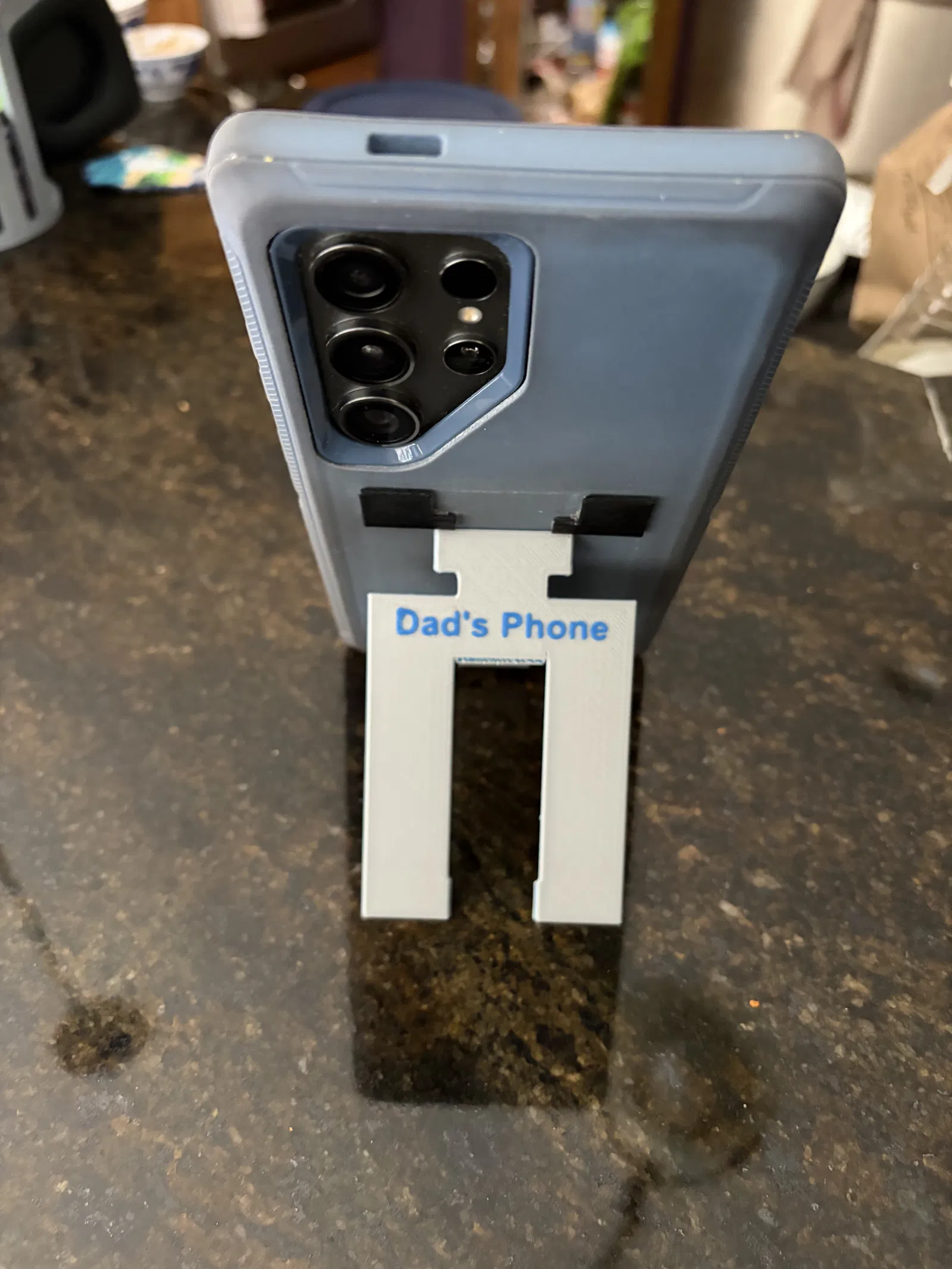 Mẫu giá đỡ điện thoại pop-out mỏng, gắn dán được, dùng lai PETG/TPU để bền khớp mà vẫn cứng. Tương thích sạc không dây. Gợi ý đổi filament trong slicer tại 0.8–1.2mm và có thể thêm chữ để cá nhân hoá.