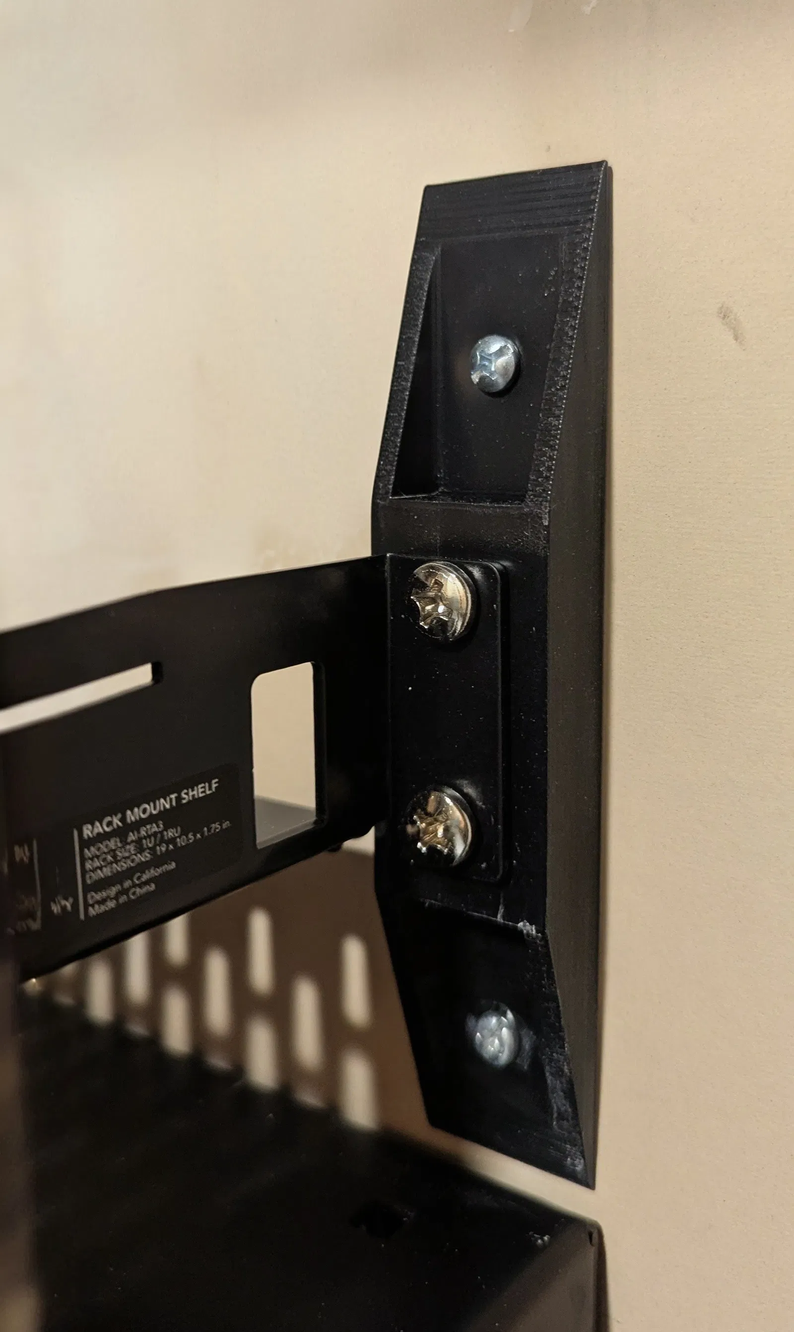Mẫu bracket giúp treo tường kệ rackmount chuẩn 1U bằng cage nut và ốc/vít sẵn có. Thiết kế heavy-duty, có thể chịu NAS gắn đầy ổ. Khuyến nghị dùng tắc kê/neo tường đúng tải và loại tường để lắp an toàn.
