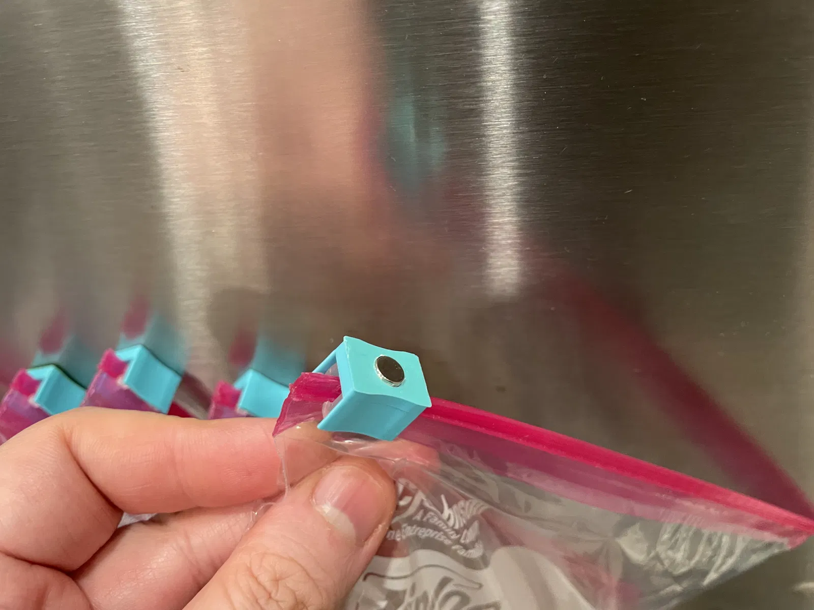 Cho phép bạn gắn một nam châm 8x3, một hoặc hai 6x3 vào clip thanh trượt của túi ziplock: https://www.costco.com/ziploc-slider-storage-bag%2c-variety-pack PEGBOARD, HOẶC TRƯỜNG HỢP CÔNG CỤ TUYỆT VỜI