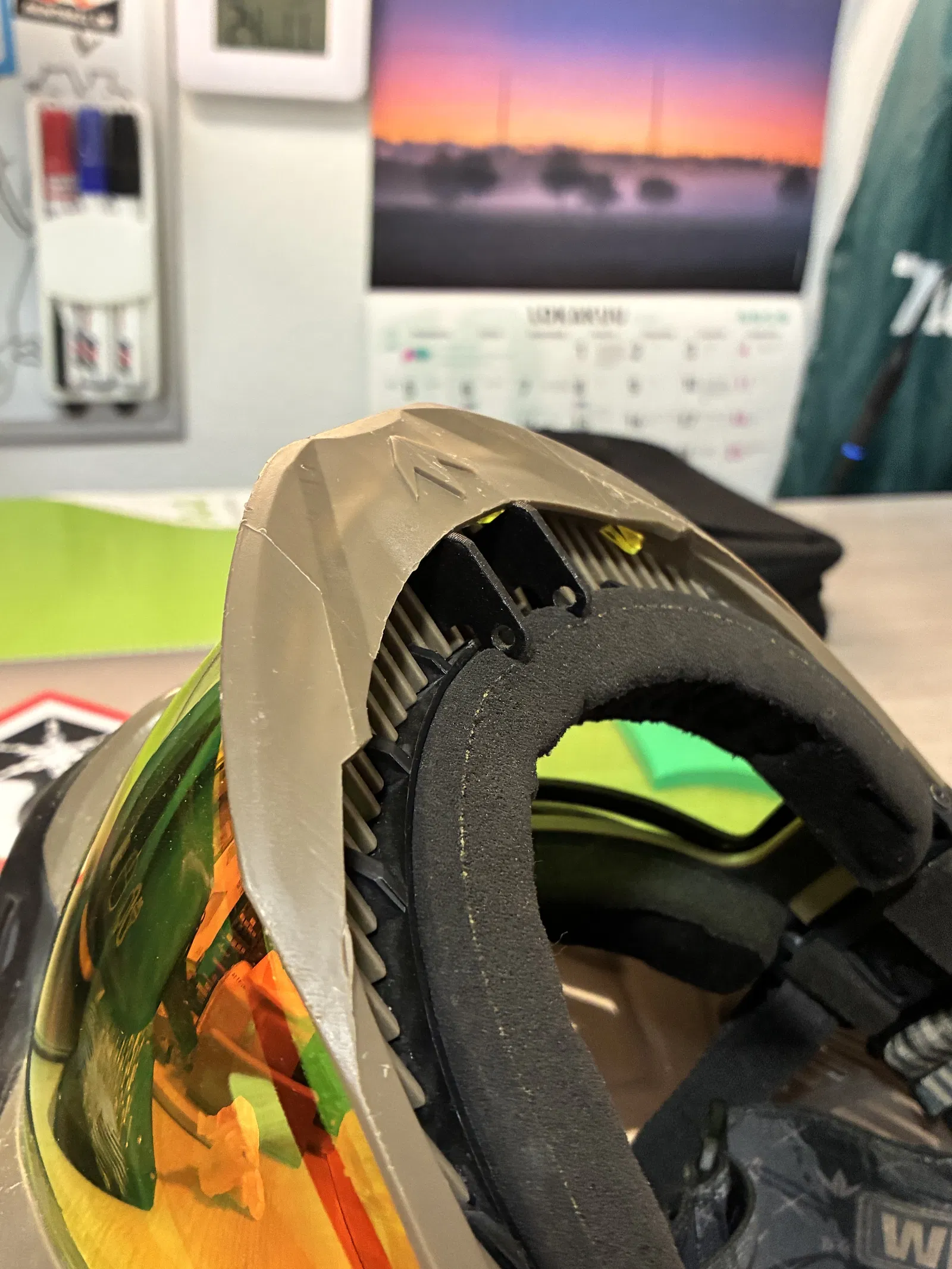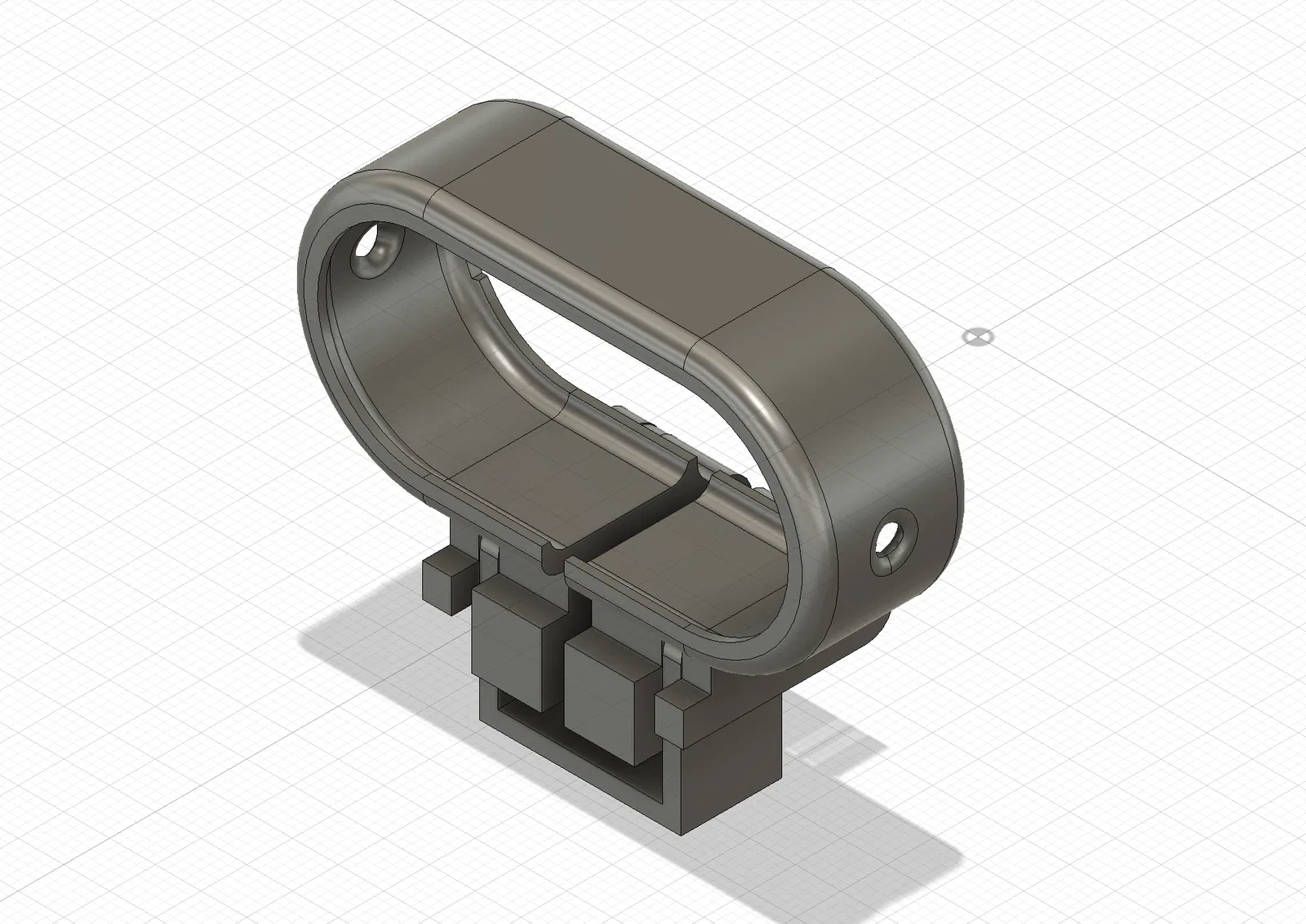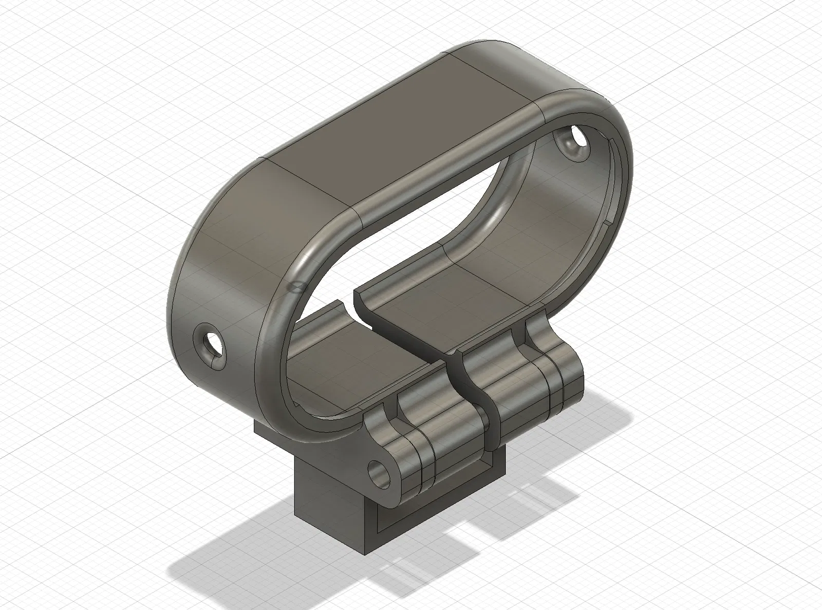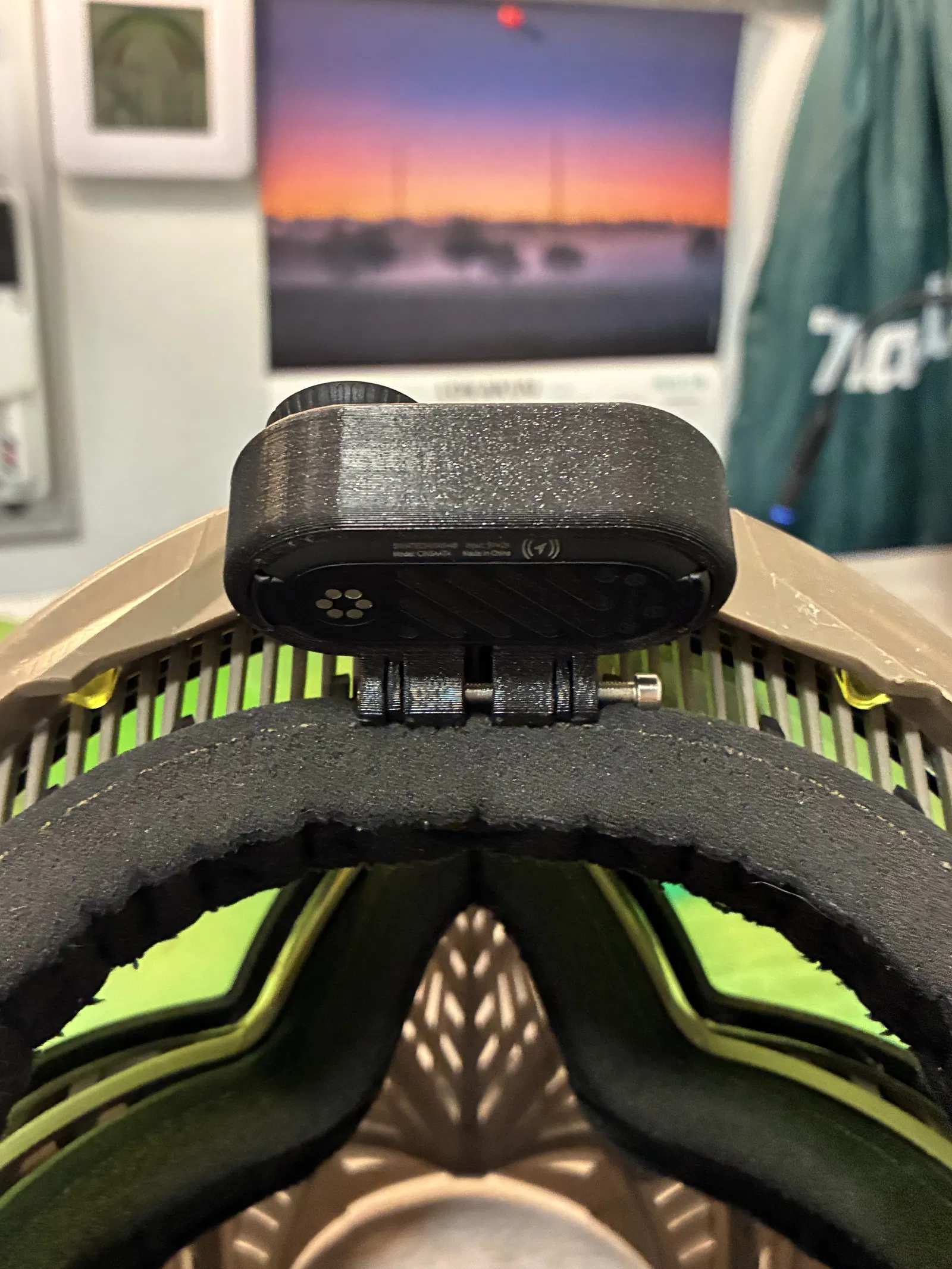 Ngàm mount này gồm 2 phần: phần thân chính để giữ camera, và phần trượt vào các khe thoáng (vents) của mặt nạ. Độ fit khá chặt, bạn sẽ cần canh và “nắn” nhẹ để luồn phần này vào các lưới (grilles). Ngàm được siết cố định bằng ốc máy M3 dài 30 mm và một M3 heat insert.