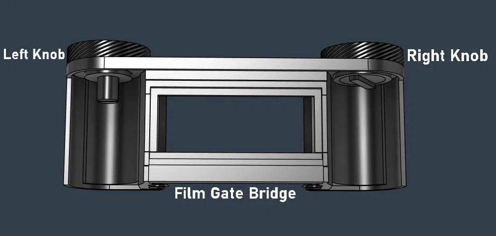 1 - dán (glue) film gate bridge vào đúng vị trí, dán take up spool lại với nhau, lắp các knobs và dán các light guards của chúng vào chỗ
