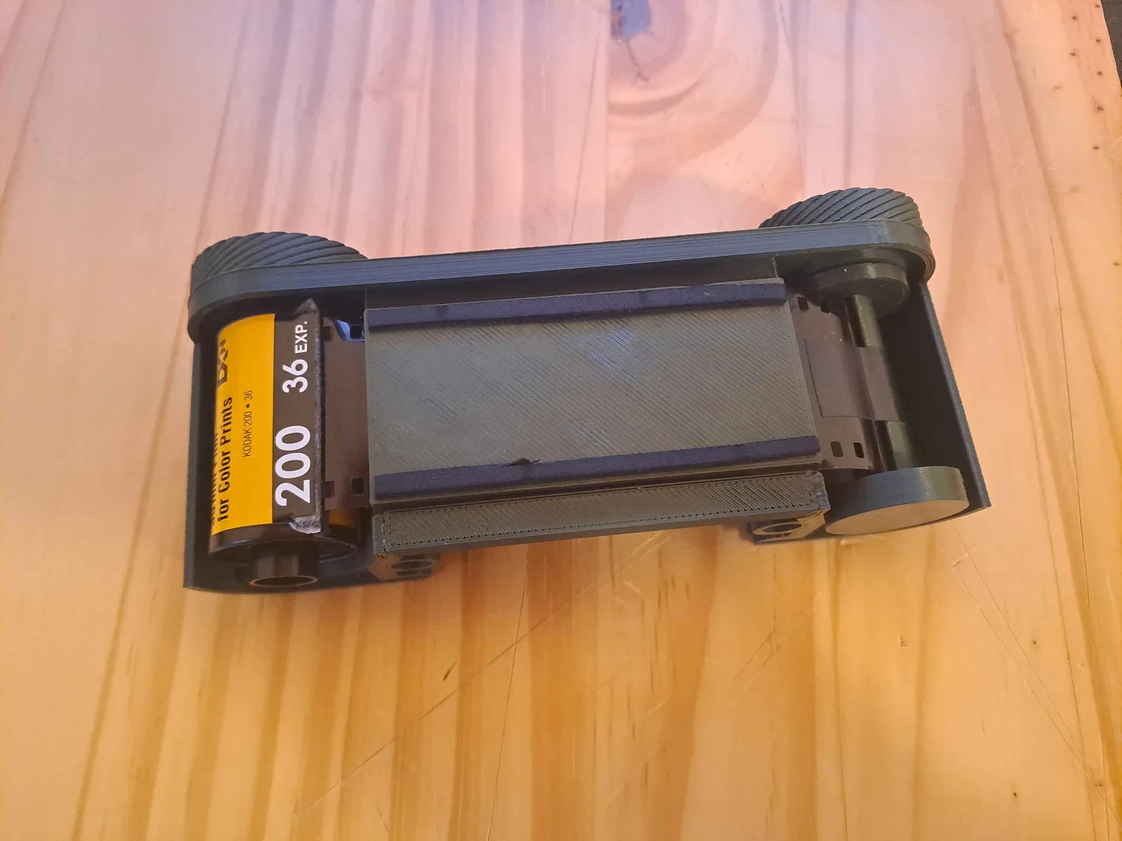 Camera dùng film 35mm tiêu chuẩn với cassette, hỗ trợ khổ hình lên tới 65x24mm. Ở trạng thái hiện tại chỉ có lens cone pinhole cho 35mm, nhưng có thể làm thêm các loại khác khá dễ.