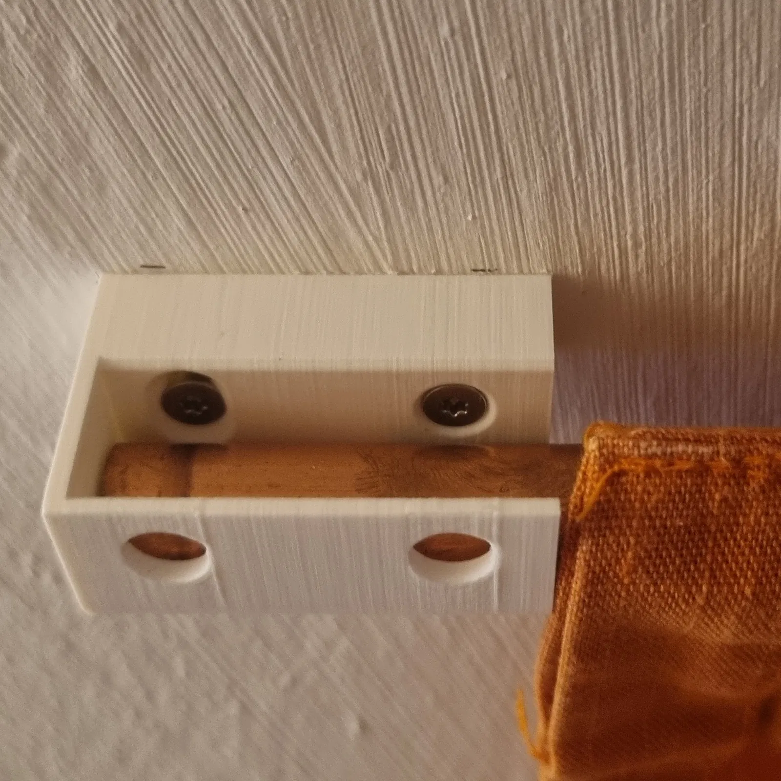 Giá đỡ cho thanh treo rèm đường kính 15mm (gỗ, ống đồng hoặc tương tự), chừa khoảng cách 10mm so với tường. Thiết kế để bắt vít cố định bằng vít 3mm.