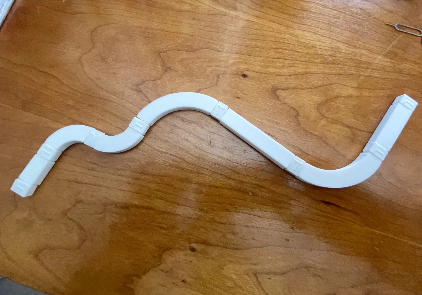 Đèn LED Track Lighting không cần hàn (Solderless LED Track Lighting) là một bộ linh kiện modular có thể tích hợp vào các dự án điện tử hoàn chỉnh với rất ít hoặc không cần dán keo. Thiết kế tận dụng độ dẻo của TPU để kẹp/giữ dây với nhau mà không cần hàn hay dán. Mỗi LED gồm năm chi tiết và có thêm bộ dây + nắp để nối thành track lighting. Tất cả chi tiết đều in bằng TPU, trừ diffuser và hai mẫu bóng “holiday” được in bằng PLA trong mờ (translucent). Mỗi đế LED có vị trí để gắn điện trở 1/4 Watt nhằm nối các LED theo kiểu song song.