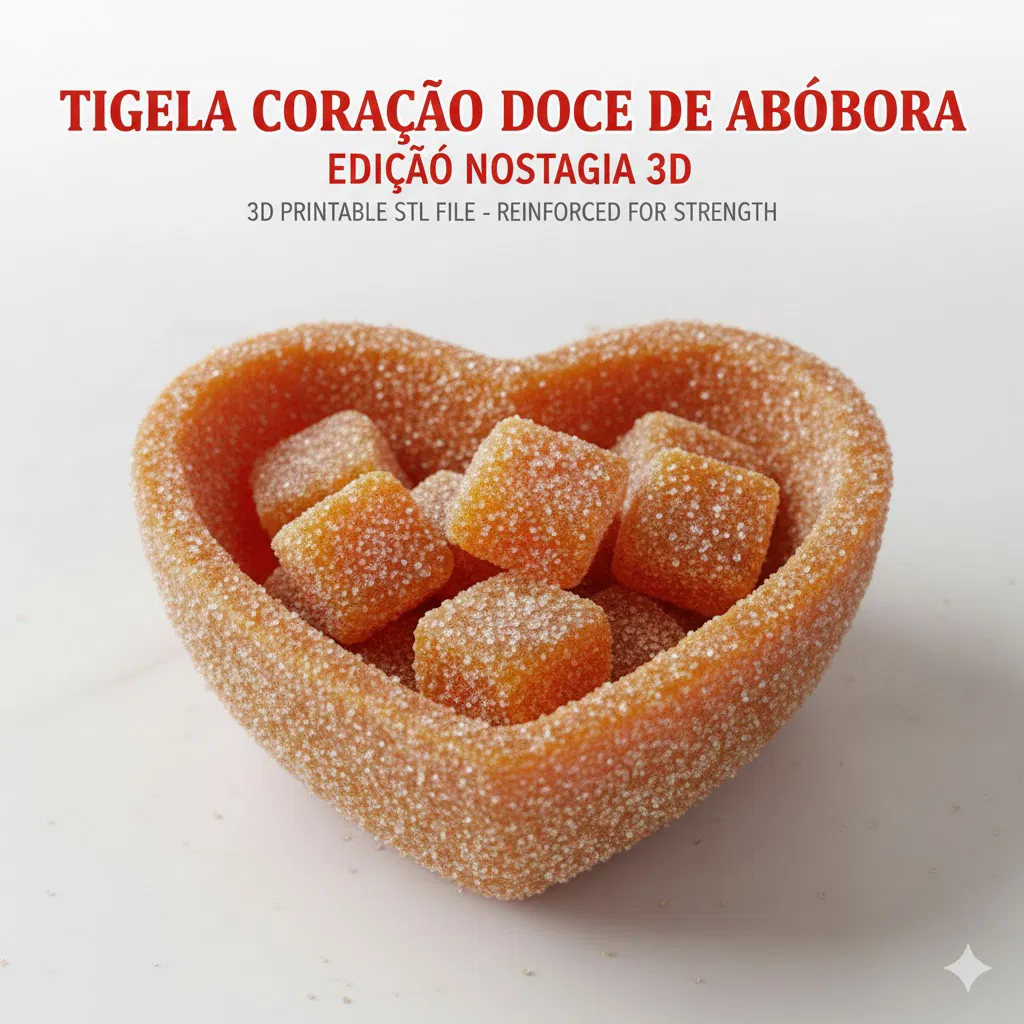 Mẫu tô/khay hình trái tim phong cách nostalgia 3D, lấy cảm hứng từ mứt bí đỏ kết tinh retro 80/90. Thành dày chắc, lòng sâu, không cần supports; in ngon với PLA, PETG hoặc Silk, tối ưu cho FDM.