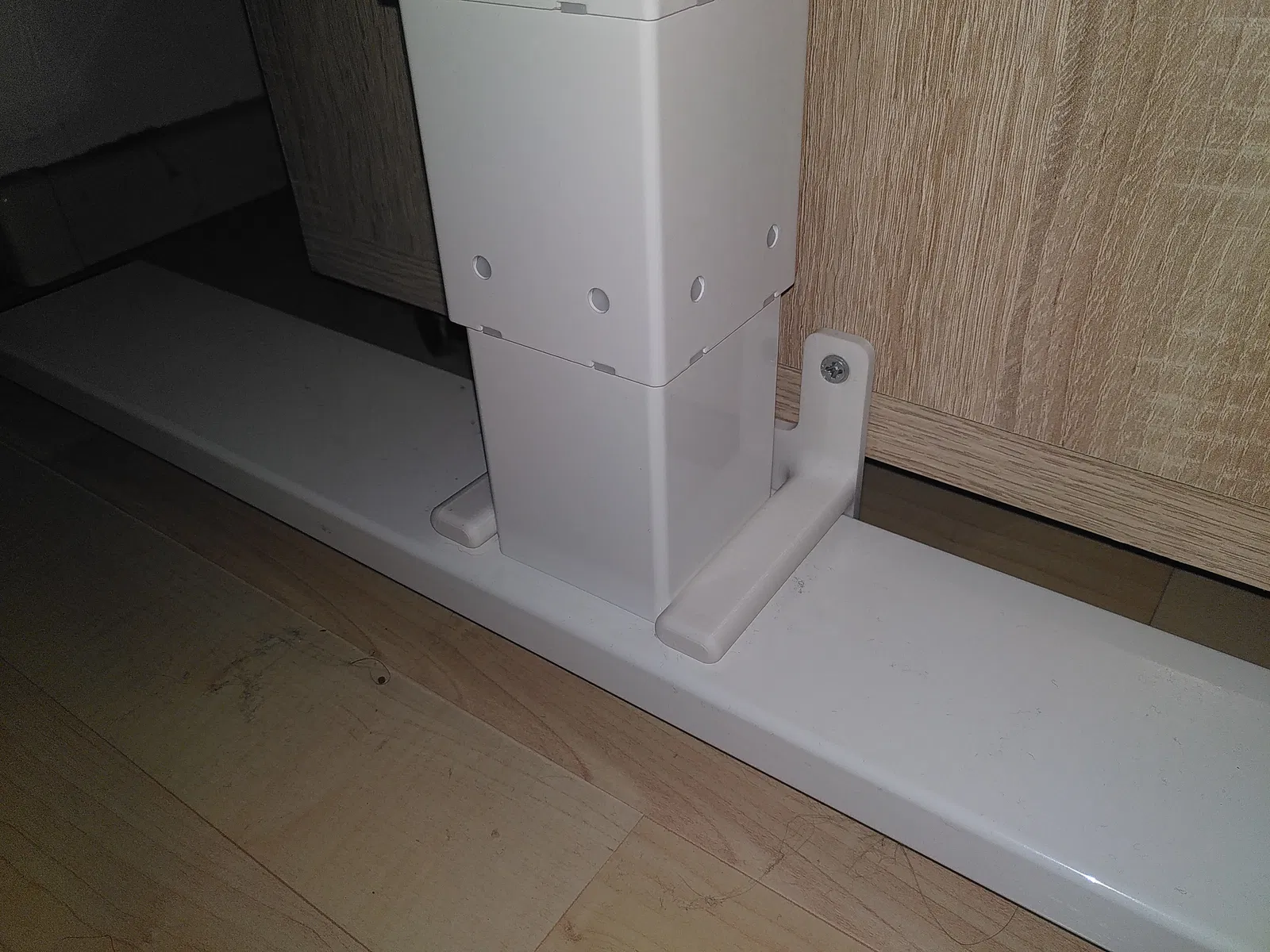 Thay vì bắt vít lên bàn, bracket sẽ được bắt vào mặt đáy của hộc tủ và sẽ ôm quanh hoặc tỳ vào chân bàn.