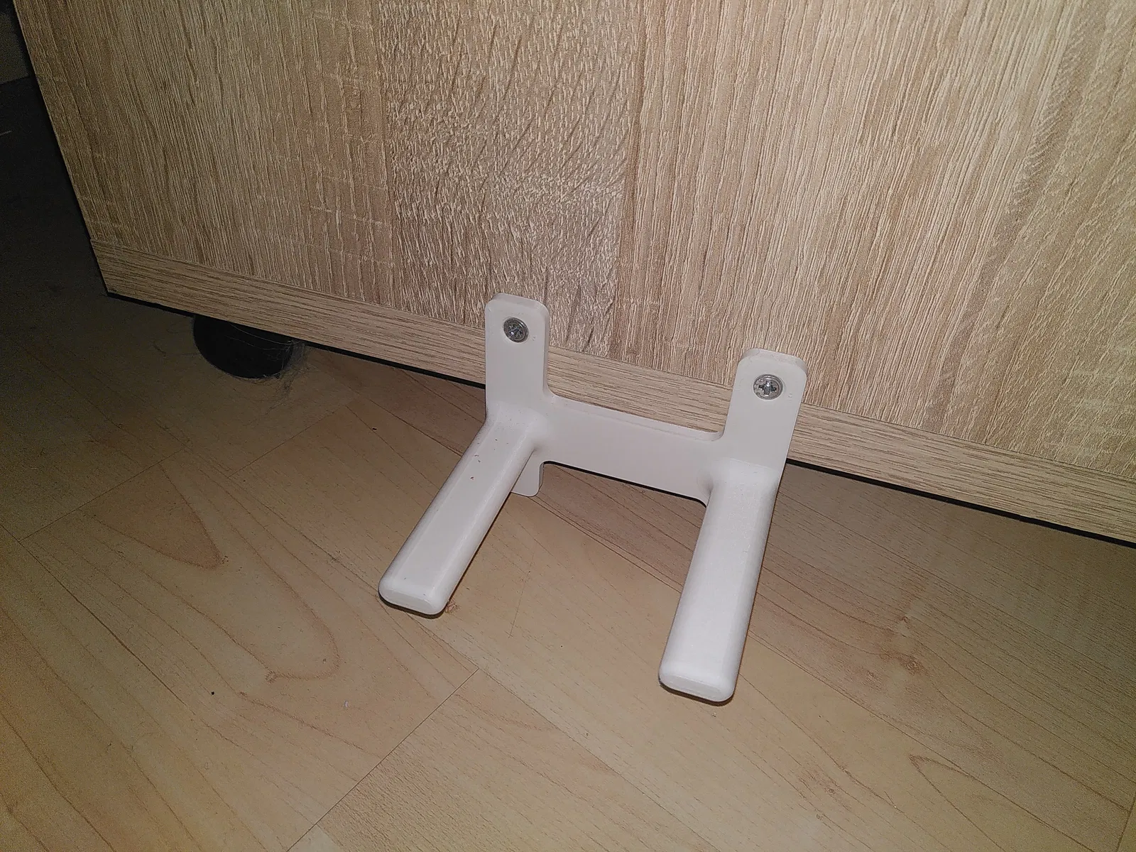 Stop bracket đơn giản gắn dưới hộc tủ ngăn kéo có bánh xe, dùng chân bàn làm điểm tỳ để chặn không cho tủ lăn lệch khi mở ngăn hay va chạm. Không cần bắt vít lên bàn; in PLA/PETG, 0.2 mm, infill 20–30%.