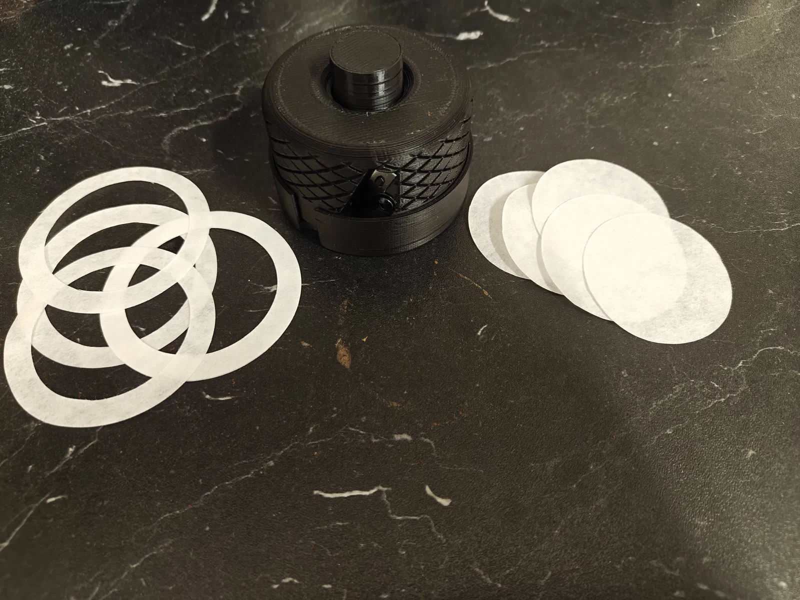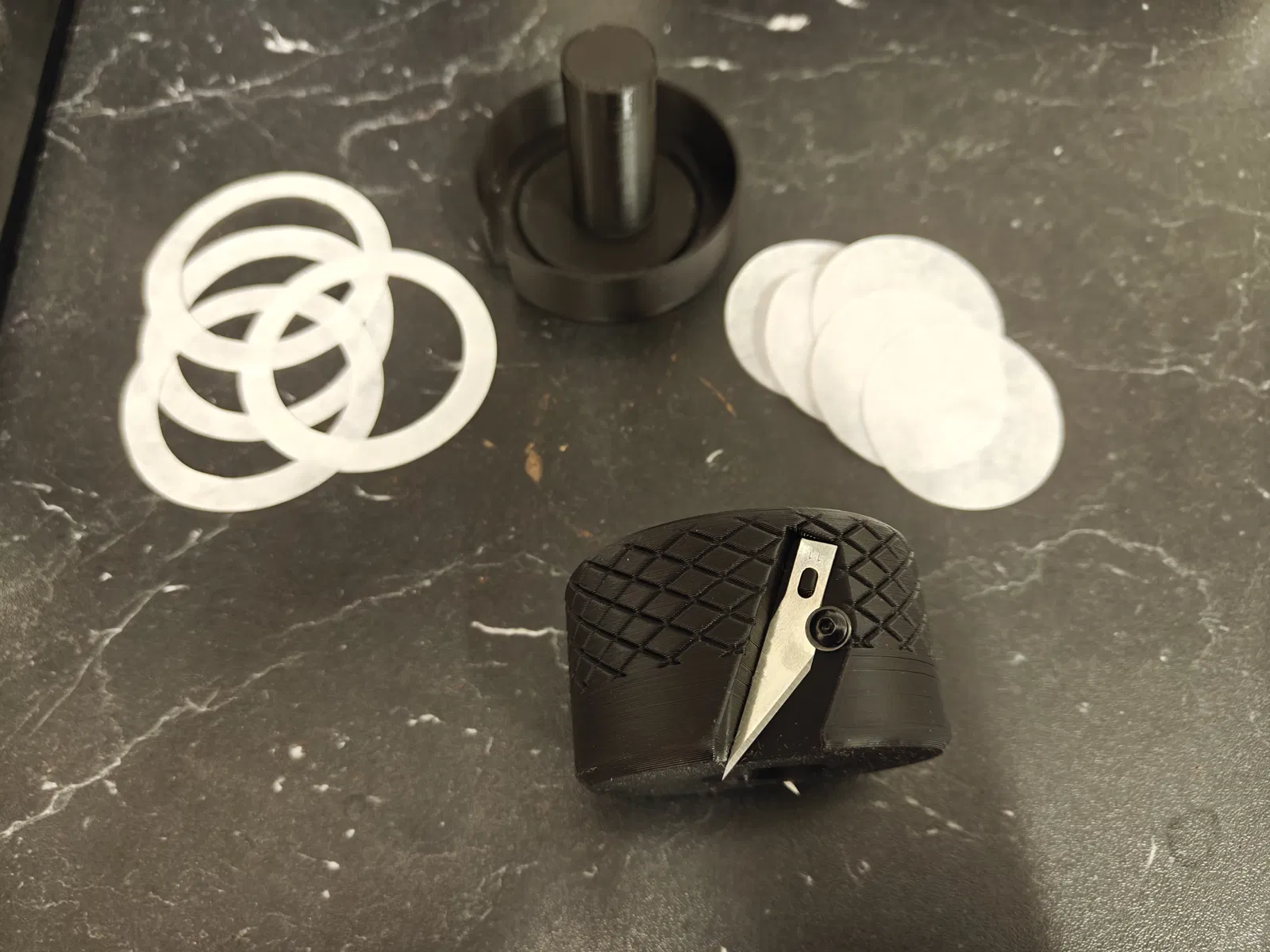Dao cắt & giá giữ giấy lọc parametric cho portafilter espresso