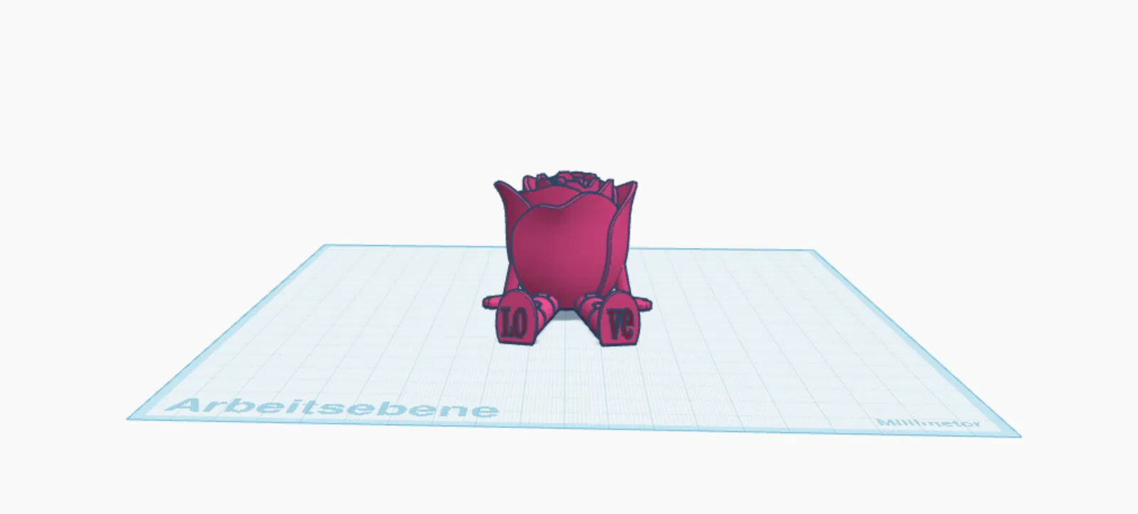 Mình thiết kế mẫu móc khóa hoa hồng này bằng cách remix từ mẫu hoa hồng gốc của Molodos. Mình thêm một nửa vòng để có thể dùng làm keychain, và tách chữ “love” ra trên hai “chân” cho vui mắt. Hy vọng nó sẽ làm bạn mỉm cười!