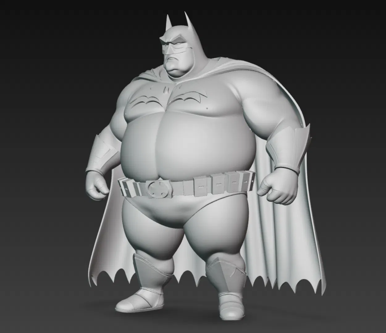 Mẫu 3D “Fat Batman” – phiên bản Batman mũm mĩm kiểu tượng figure, hợp để in trưng bày. Phù hợp cho fan DC Comics và Batman, dùng làm statue/figure printable.
