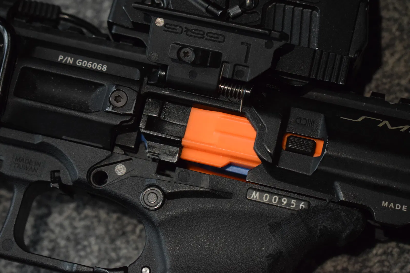Đây là mẫu close 1:1 của bolt G&G SMC-9, được ghi nhãn (Part: GHJ-A04, A013, A015).