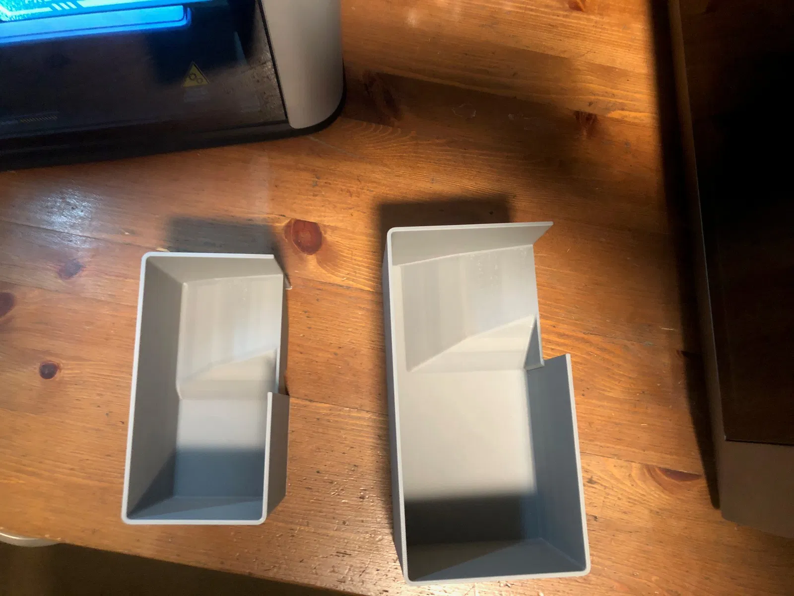 Poop Chute cho Qidi Max4 kèm bucket có thể nhận diện. Có 2 phiên bản: một bản dùng lại ốc hiện có để gắn vào mặt sau máy, và một bản không cần dùng ốc. Thiết kế hoàn toàn mới, dựa trên các tính năng từ những mẫu mình thích nhất và đang dùng. Mình muốn gom về một thiết kế dùng chung cho tất cả máy in của mình. Hiện có các bucket: 75x100, 75x150, 75x200, 100x100, 100x150 và 100x200.