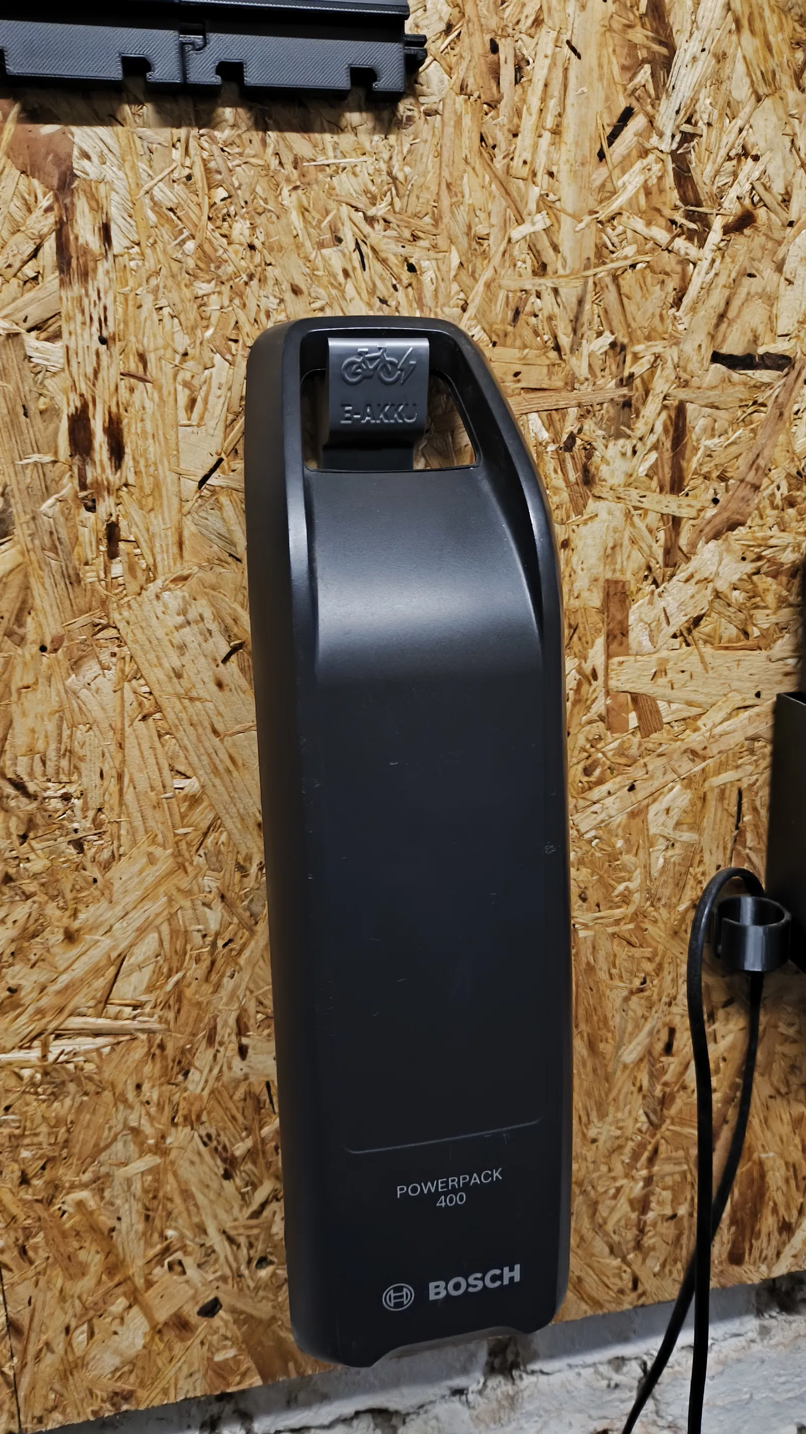 Mẫu giá treo tường cho pin (Akku) E-bike, giúp treo pin gọn gàng khi sạc hoặc thao tác tháo/lắp. Pin luôn trong tầm tay, tiết kiệm không gian và nhìn cũng đẹp, ngăn nắp.