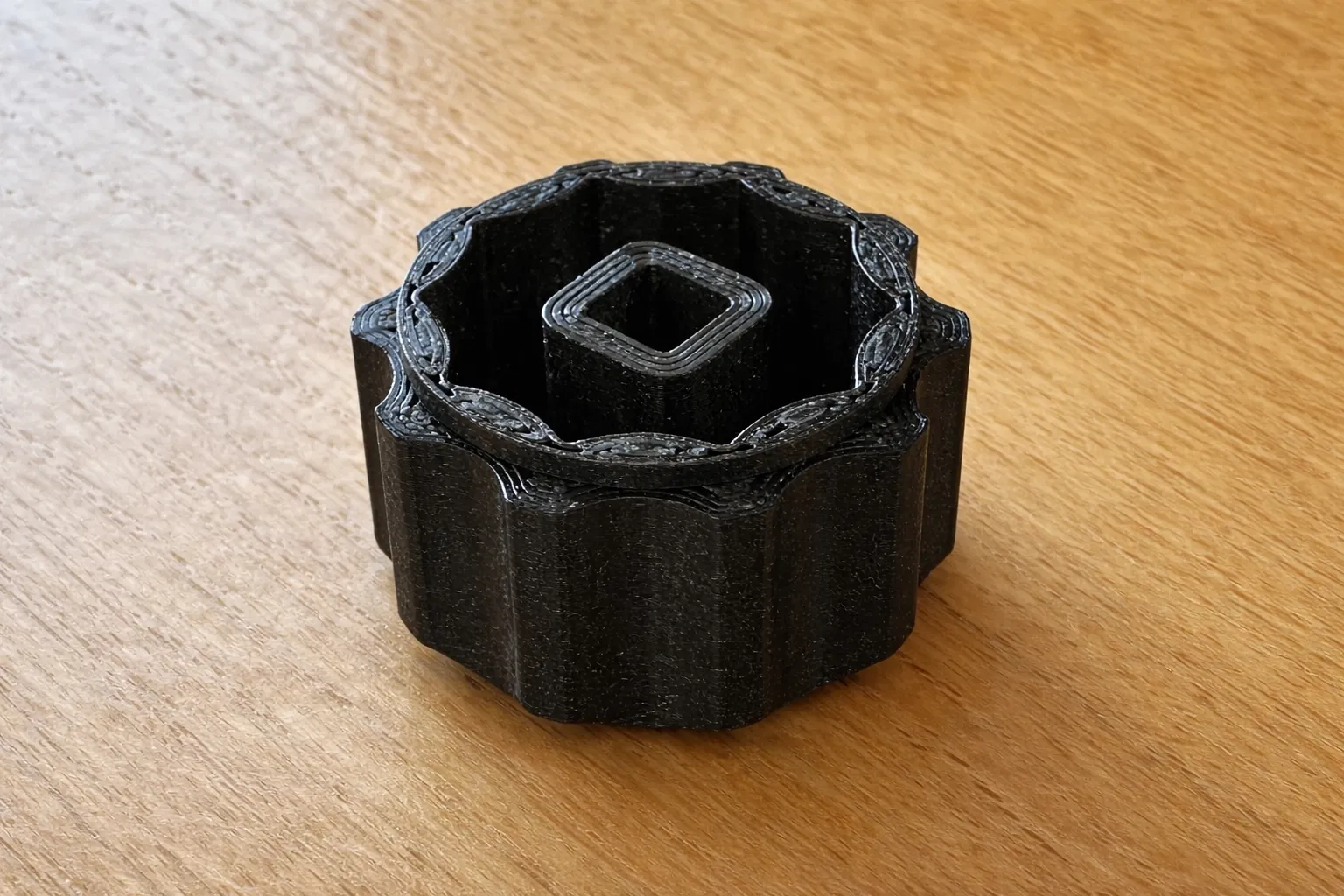 Mẫu 3D nắp (cap) thay thế phù hợp cho tay vặn van góc Geberit, dùng khi chi tiết zin bị hư hoặc thất lạc. Khuyến nghị in PETG/ABS, infill cao (tốt nhất 100%), có thể không cần support.