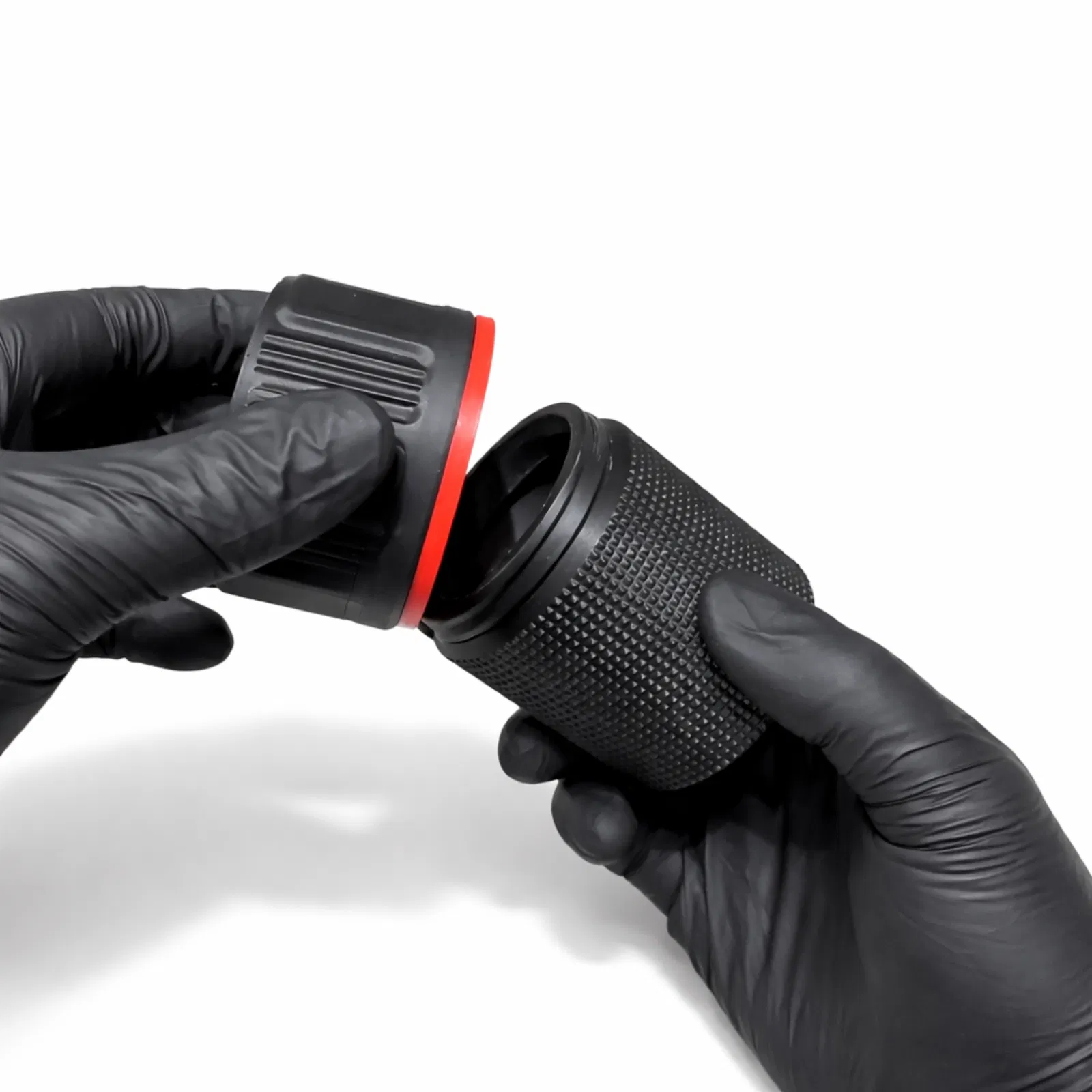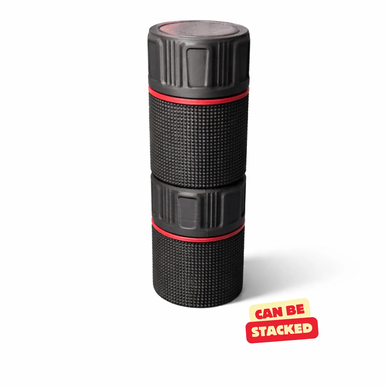 Thiết kế dùng cơ chế ren vặn chắc chắn và bề mặt bám tay có texture để cầm nắm ổn định. Nhờ hệ đáy modular, bạn có thể stack nhiều hộp lên nhau để tạo thành một “tháp” lưu trữ theo nhu cầu.