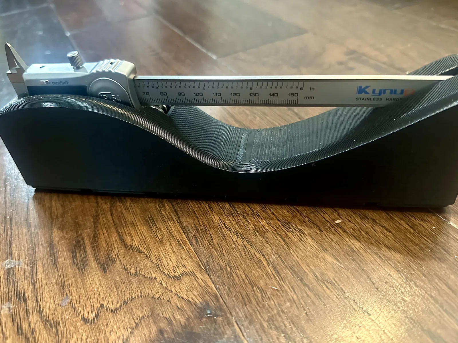 - v2: Mình đã giảm chiều cao tổng thể của holder. Nhờ vậy sẽ dễ cầm/lấy thước kẹp nhanh hơn, đồng thời tiết kiệm filament và giảm thời gian in.