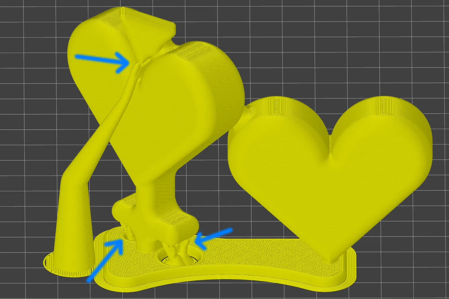 Bạn sẽ cần 3 support, như trong hình. Các support bổ sung khác có thể tắt an toàn trong slicer.
