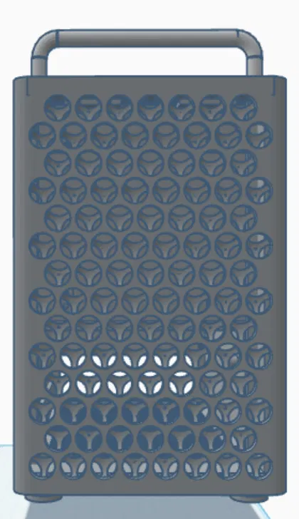 Case ITX SFF phong cách Mac Pro (~8.7L), hỗ trợ 3 quạt (2x92mm trước, 1x80mm sau), main ITX, tản CPU ~100mm (khuyến nghị <80mm), RTX 3070 FE, PSU SFX. Chia 3 file STL, dùng nam châm 8x2 và ốc M3x16.