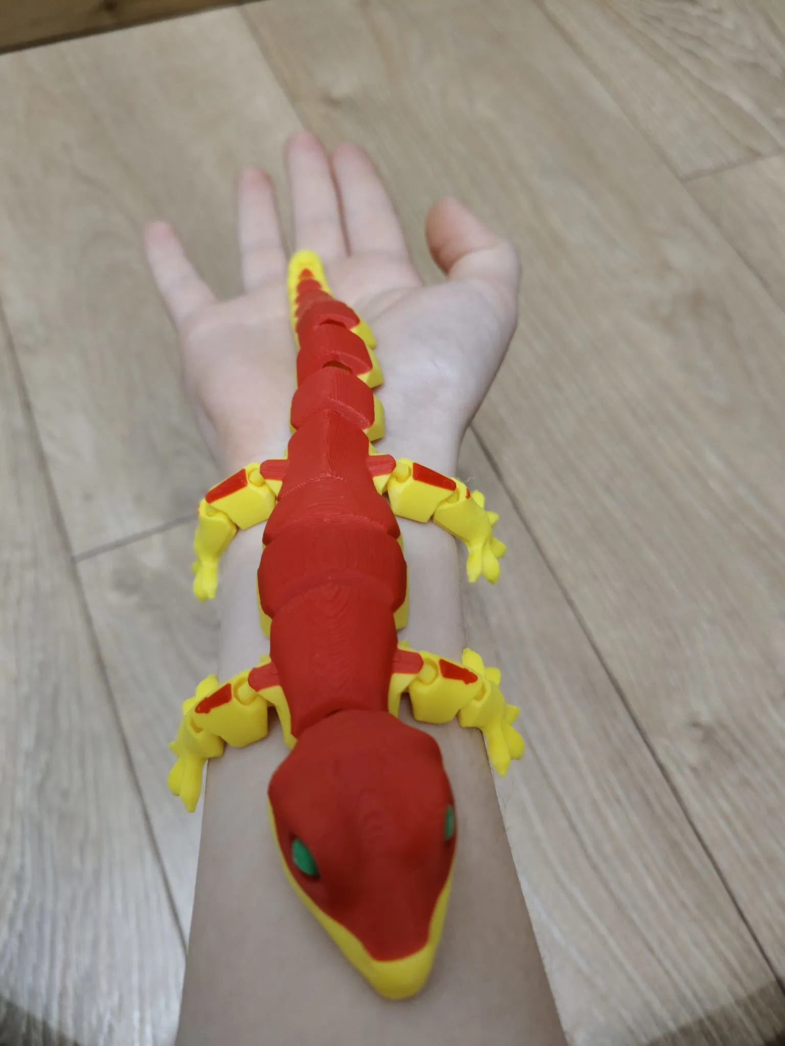Jaszczurka Flexi (thằn lằn flexi) bản miễn phí, độ chi tiết cao. Khuyên dùng in bằng PLA hoặc PETG, nozzle 0.2/0.4 và infill 15–85%. Lưu ý: phần mắt được in tách riêng.