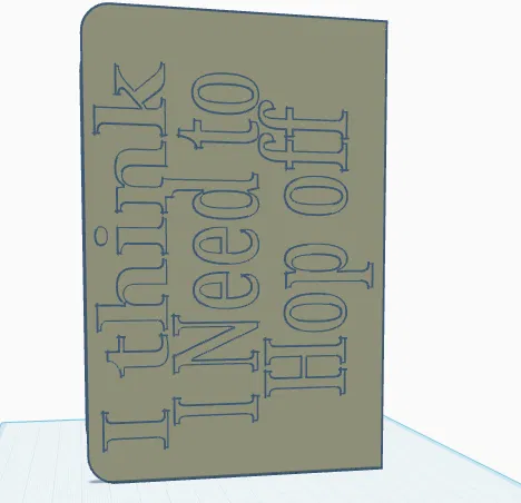 Mẫu ốp/cover cho dock Nintendo Switch 1, có in dòng chữ hài hước “I think in need to hop off”. Phù hợp để in 3D làm đồ trang trí cho góc chơi game và bảo vệ dock.