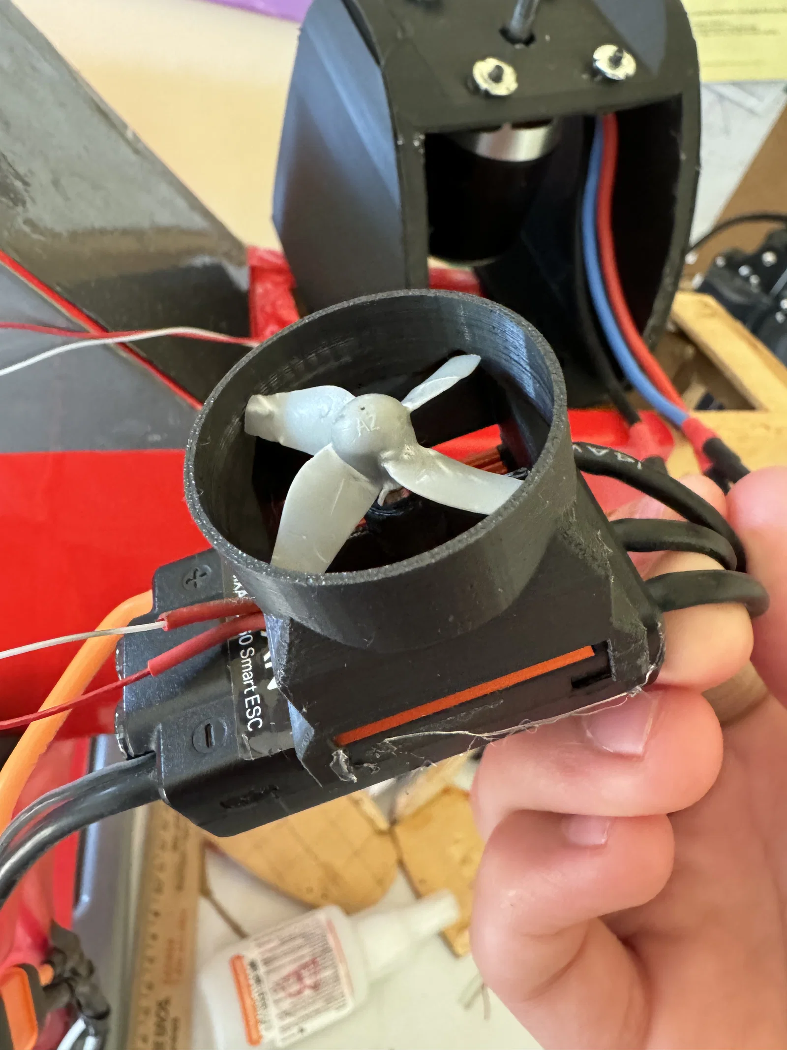 Giá đỡ quạt làm mát thiết kế vừa khít cho Avian 60A ESC, giúp giảm quá nhiệt khi chạy RC airplane. Motor/cánh mua trên Amazon; có thể cần tỉa cánh. In úp ngược bằng PLA, nozzle 0.4mm.