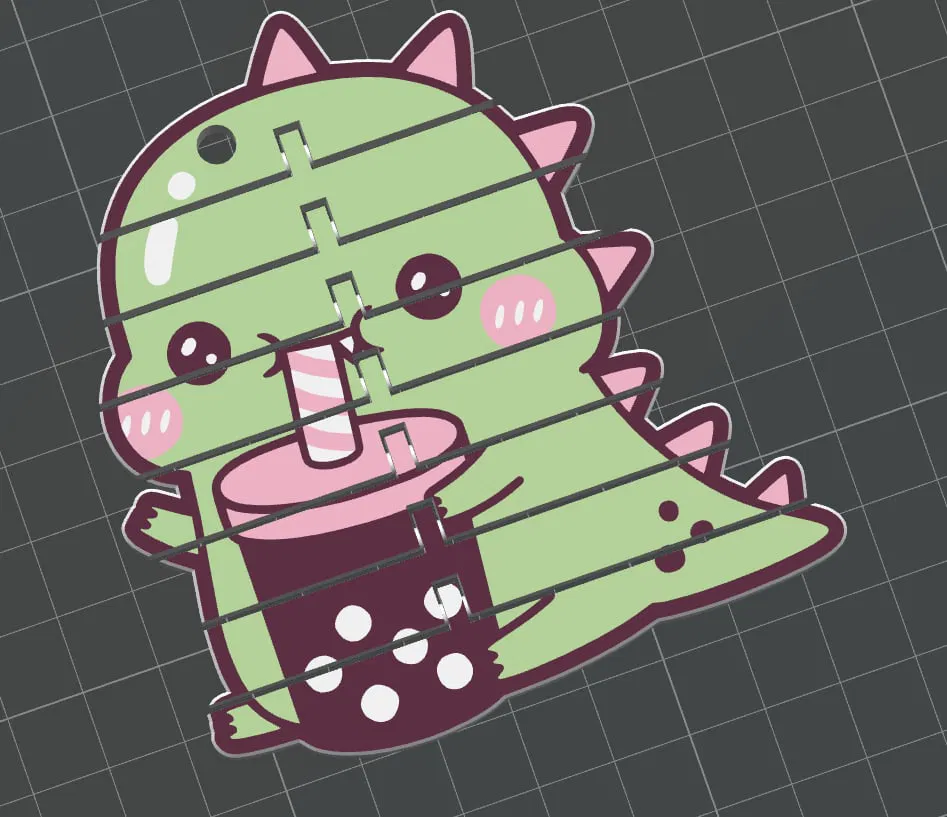 Mẫu móc khóa khủng long flexi siêu dễ thương, đi kèm ly trà sữa. Thiết kế dẻo, uốn cong vui tay, hợp để làm phụ kiện balo, chìa khóa hoặc quà tặng nhỏ xinh cho người mê dino.