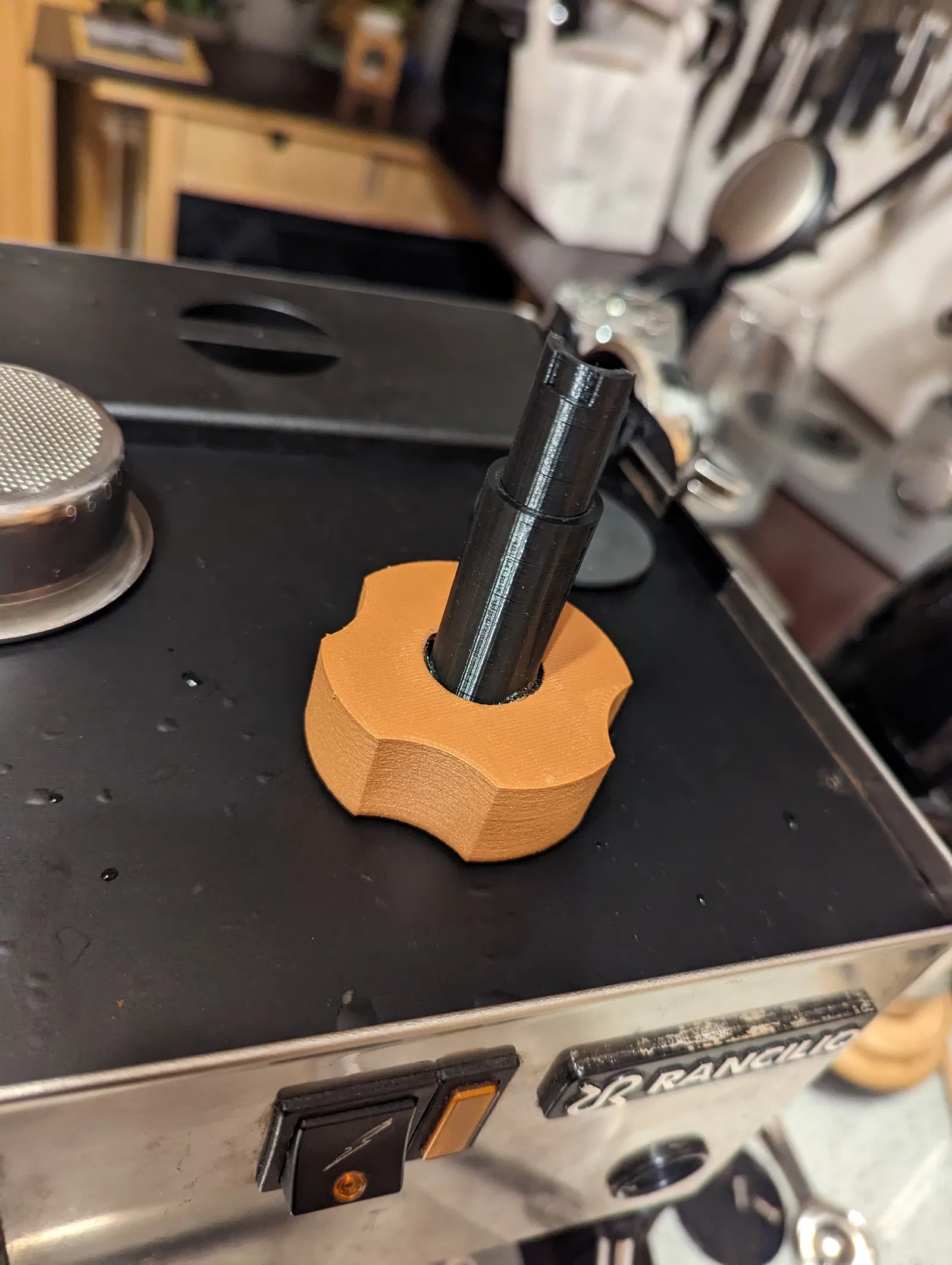 Mình đã thiết kế một núm vặn hơi (Steam Knob) dạng modular cho máy Rancilio Silvia v3 của mình. (không chắc là chi tiết này có vừa với các đời trước hay sau không)
