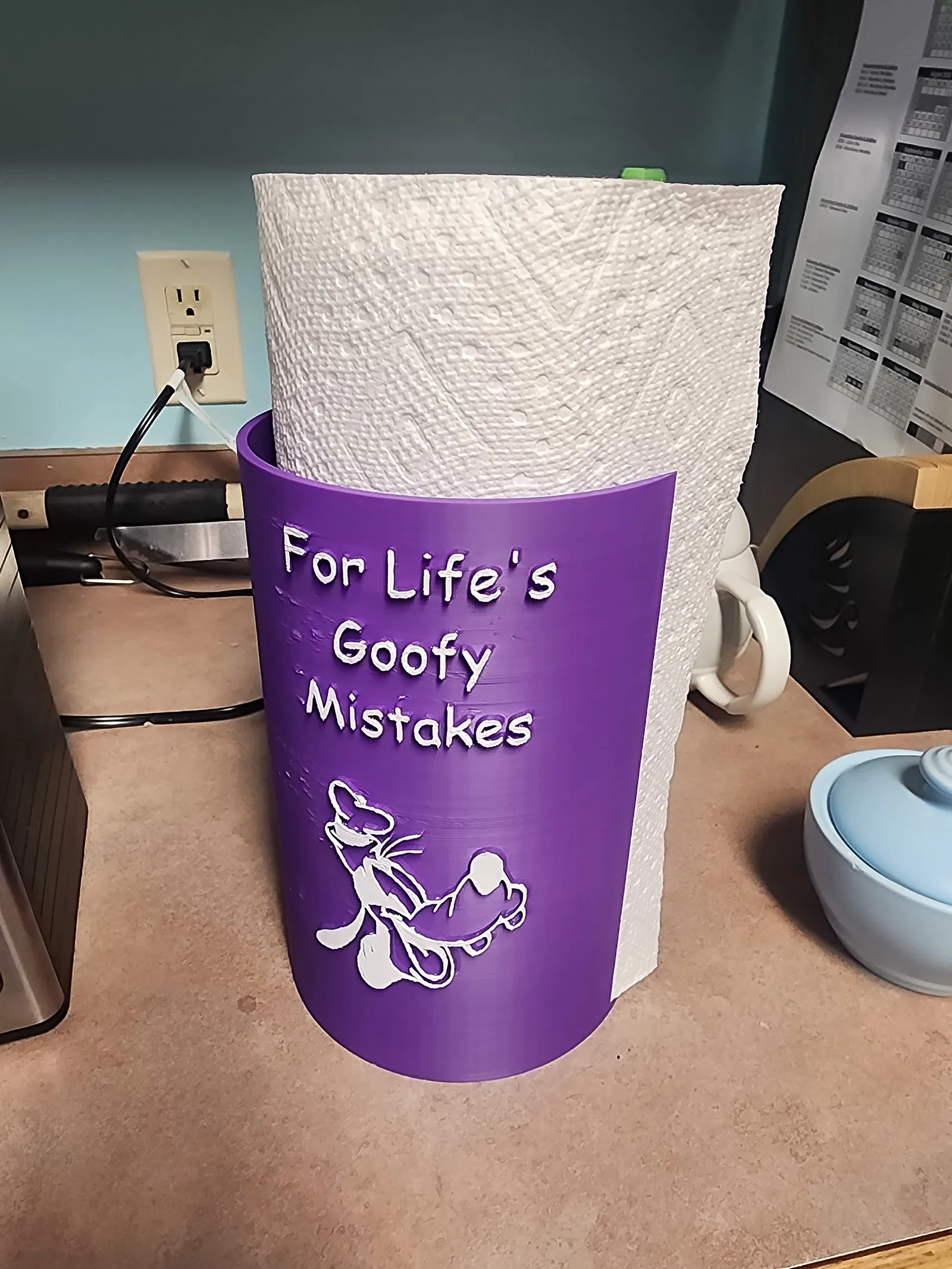 Mẫu giá treo/kệ khăn giấy phong cách vui nhộn dành cho fan của Goofy. Phù hợp để in 3D trang trí bếp hoặc phòng ăn, giúp đặt cuộn giấy gọn gàng và tạo điểm nhấn dễ thương.