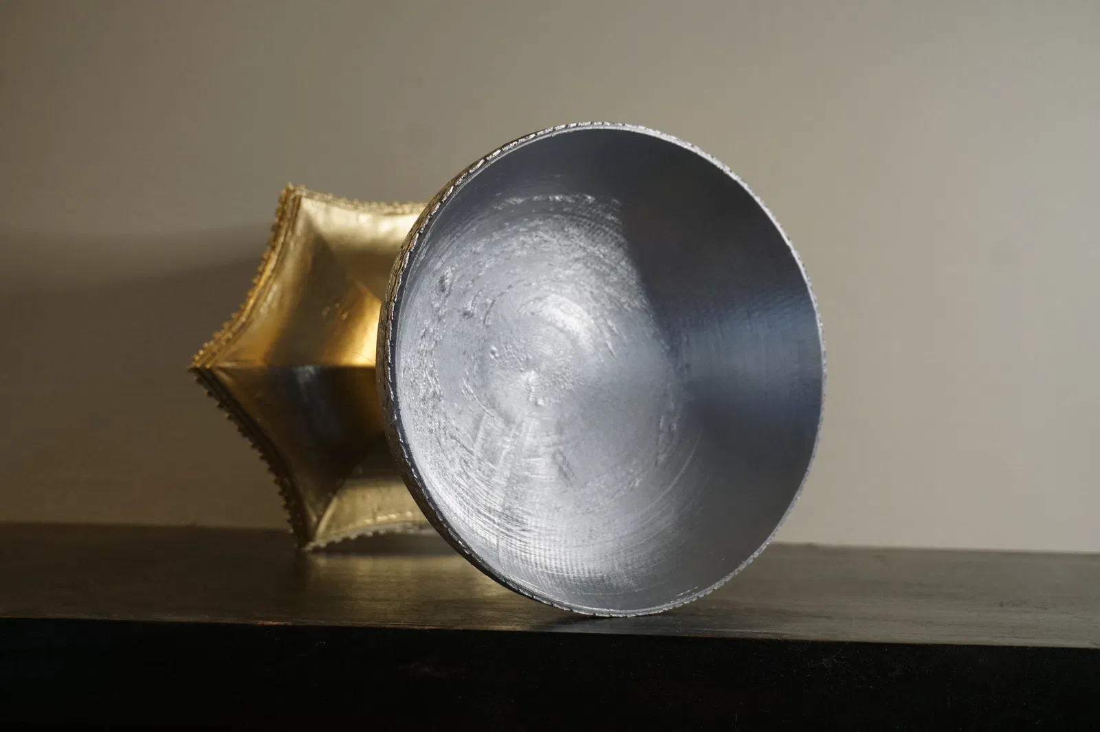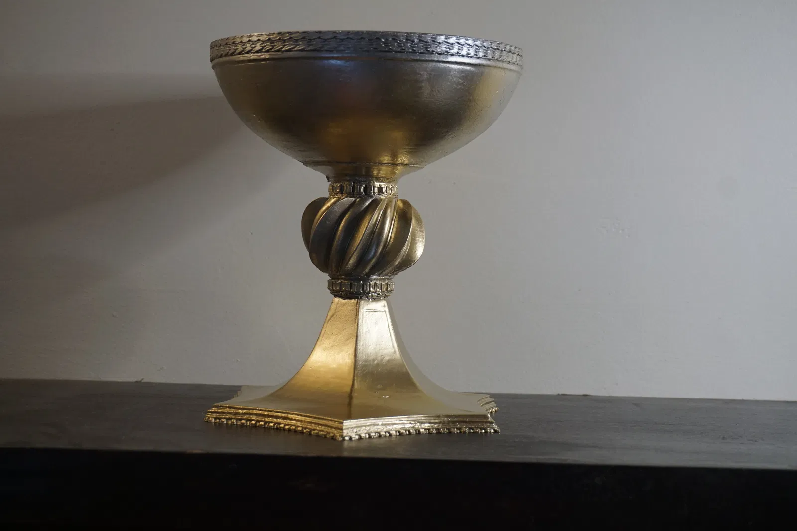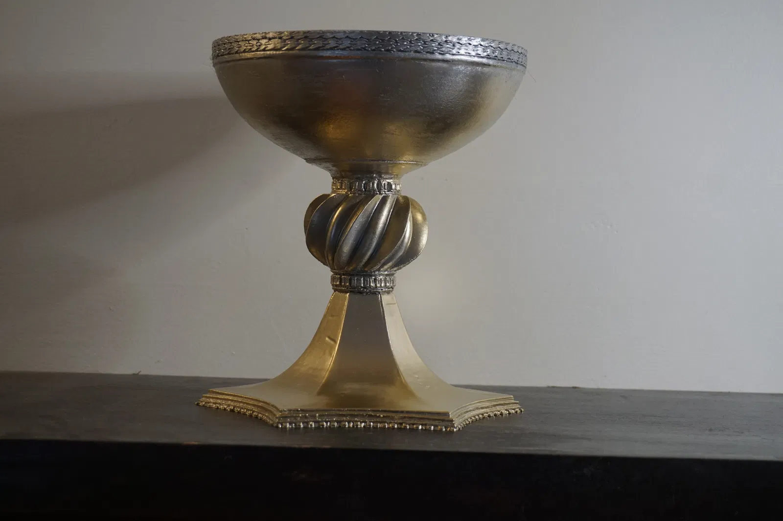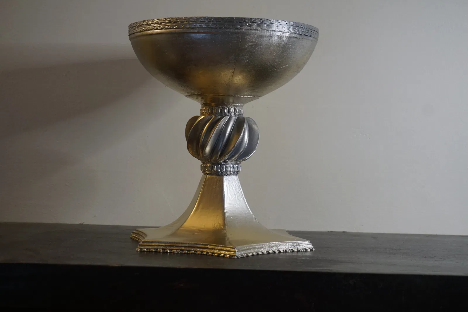 Bản prop Chén Thánh (Holy Grail) tái tạo khoảng 90% đúng như trên phim Excalibur (1981). Kích thước 18×18×20 cm, bề mặt phản chiếu mạnh; viền miệng chưa y hệt bản phim nhưng là nền tảng rất tốt.