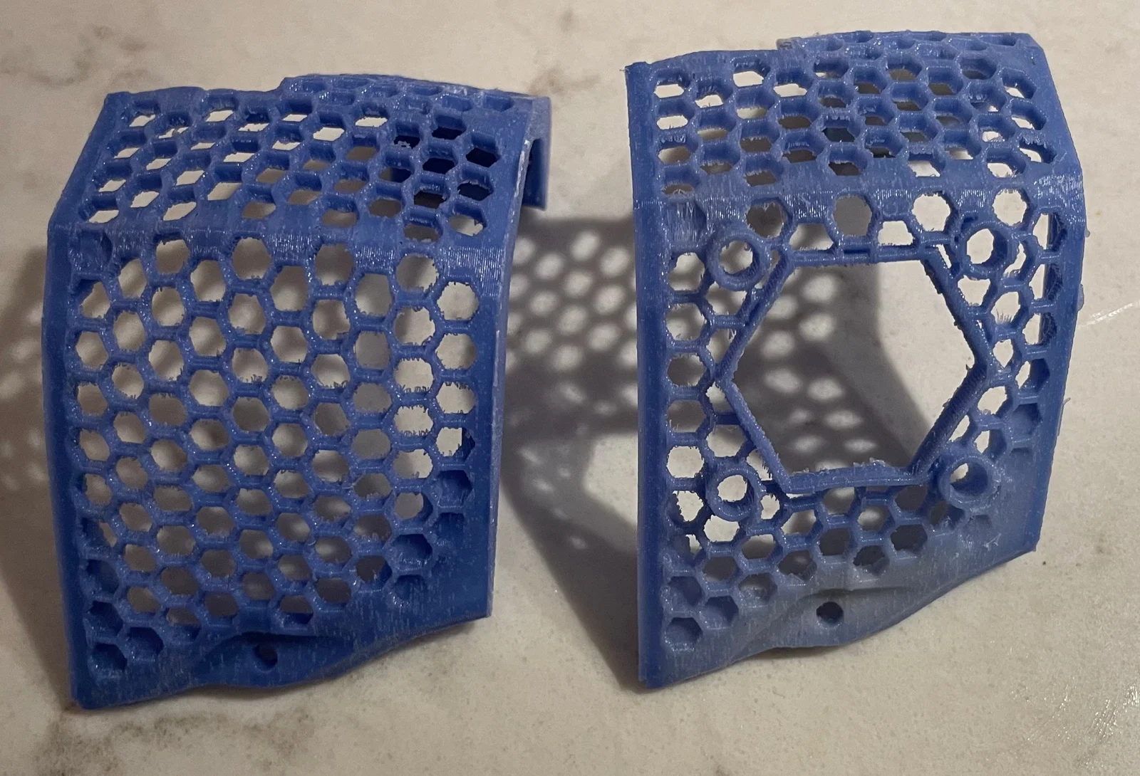 Tôi thấy trình điều khiển đầu công cụ EBB của tôi đã thức dậy vào khoảng 90c! Vì vậy, một cái gì đó phải được thực hiện càng sớm càng tốt! Tôi đã lấy cánh cửa EBB của BTT và đặt Hexagon cổ điển Bestagon Bestagon trên đó để làm lỗ thông hơi. Một chỉ là lỗ thông hơi, người kia có giá treo để chèn nhiệt và quạt 3030.