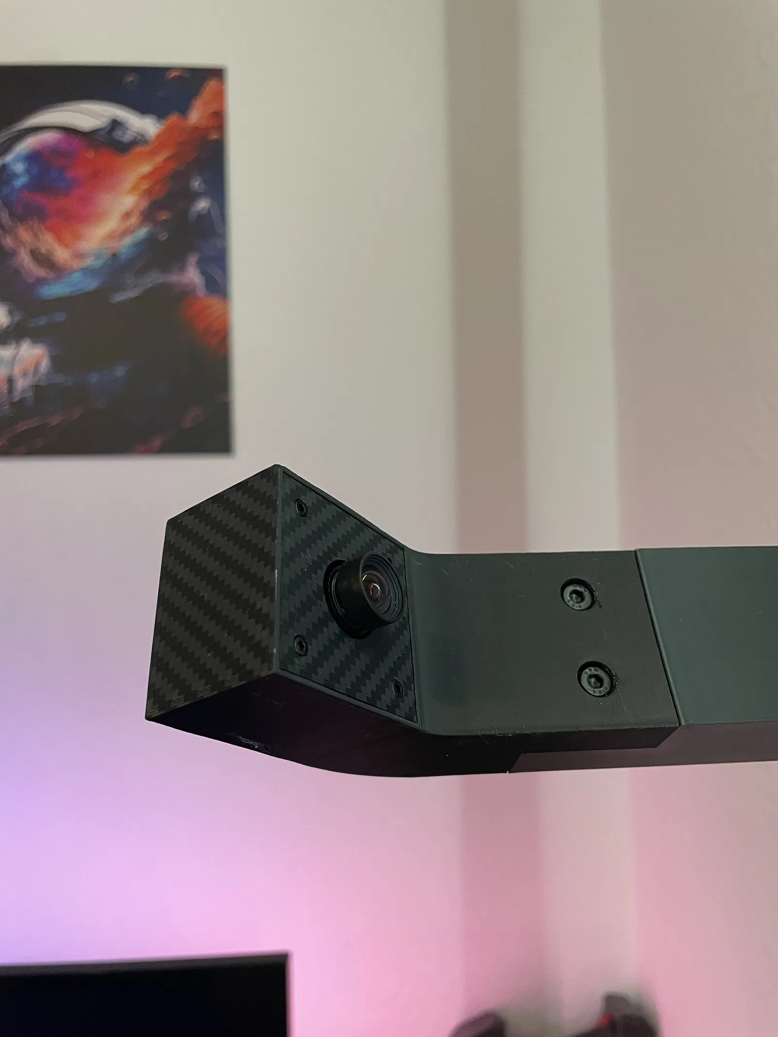 Đây là bộ setup camera cho bảng phi tiêu (Dart) do mình tự thiết kế, có kèm light ring. Mình đã in toàn bộ bộ setup này trên Bambu Lab A1. Vấn đề của những setup khác là mình hay bị chạm trúng camera phía trên khi muốn ném double 20.