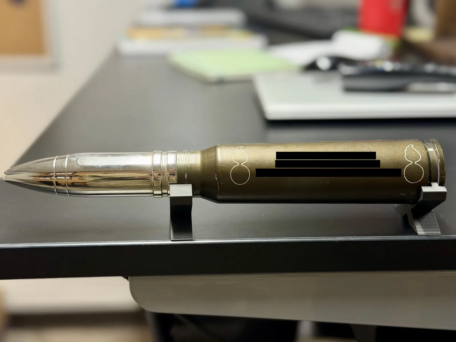 Mẫu này là một display stand để trưng bày viên đạn 30mm “huyền thoại” của chiếc A-10 thuộc United States Air Force. Bộ file có tuỳ chọn trưng bày theo phương dọc hoặc ngang; bản dựng dọc có sẵn lỗ bắt vít (built-in screw holes). Rất hợp để làm plaque hoặc trưng bày trong quầy bar.