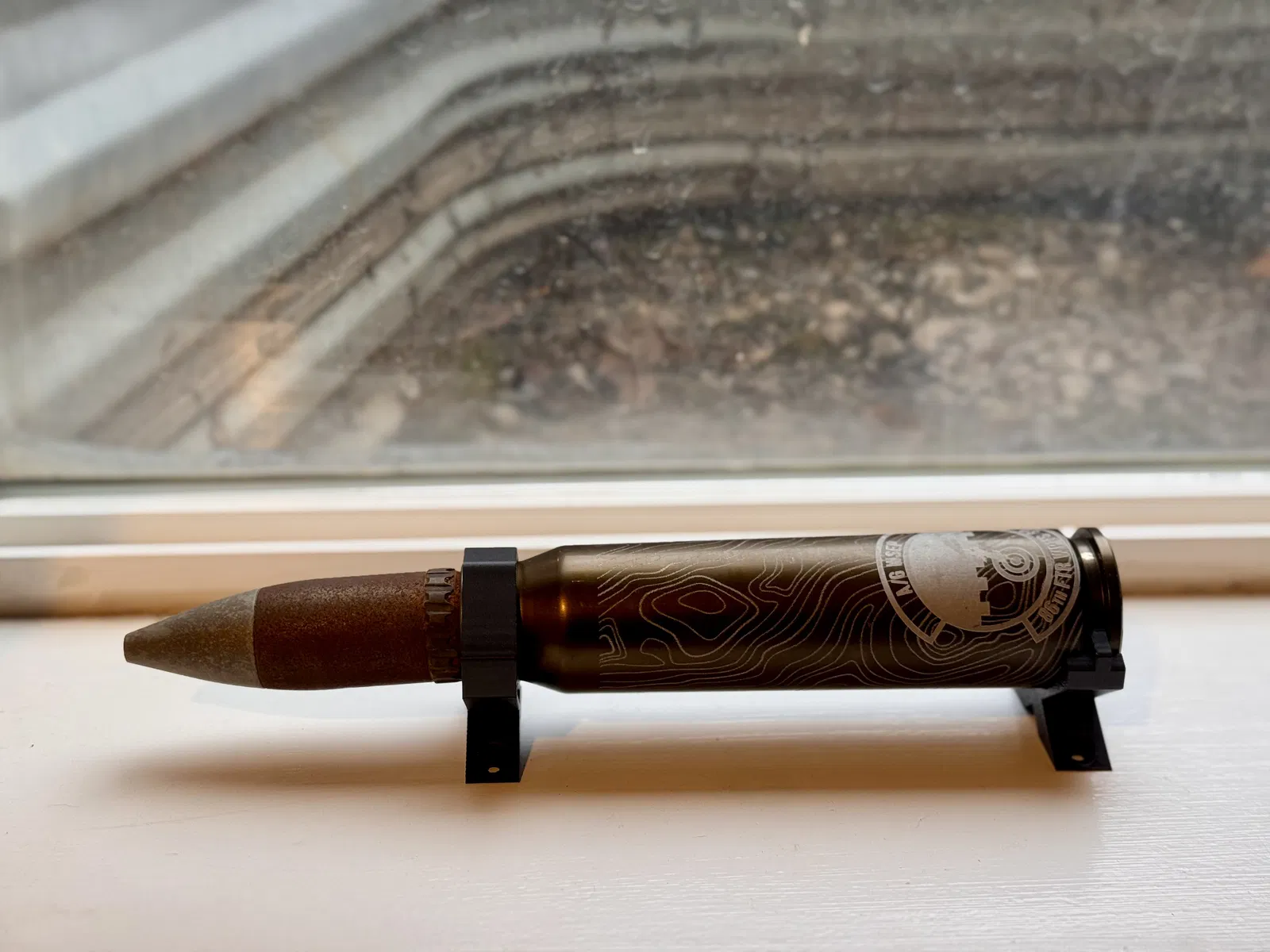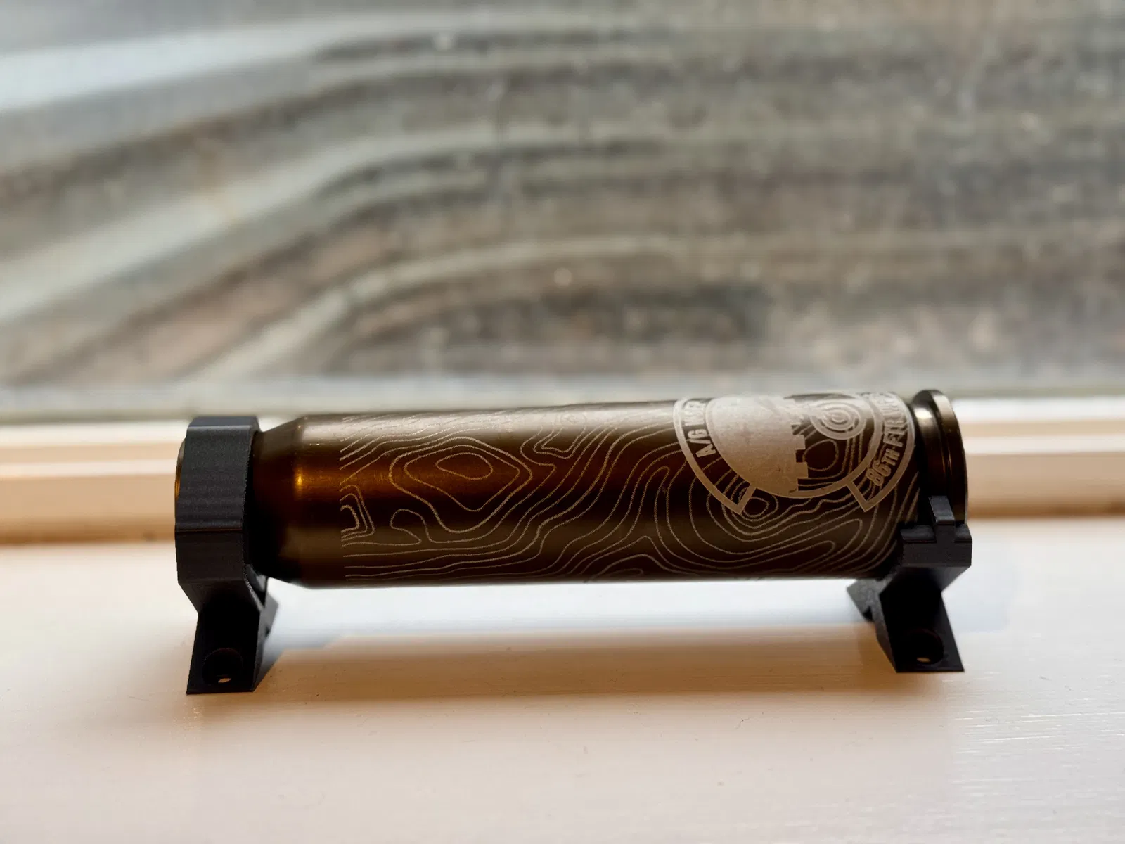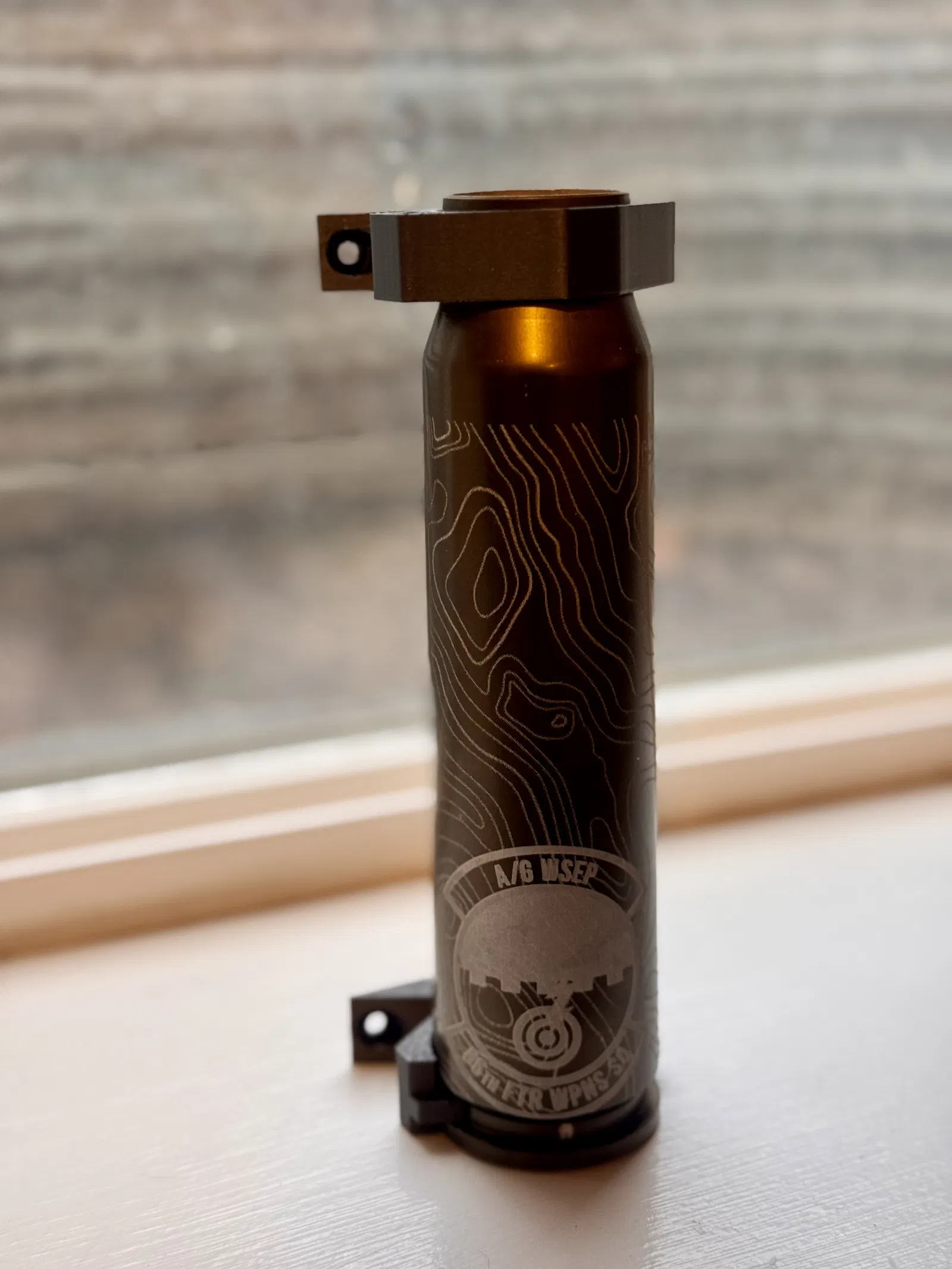 Display stand để trưng bày viên đạn 30mm của A-10 (USAF), có tuỳ chọn trưng bày dọc hoặc ngang; bản dọc có sẵn lỗ bắt vít. Phù hợp làm plaque hoặc trưng bày ở quầy bar.