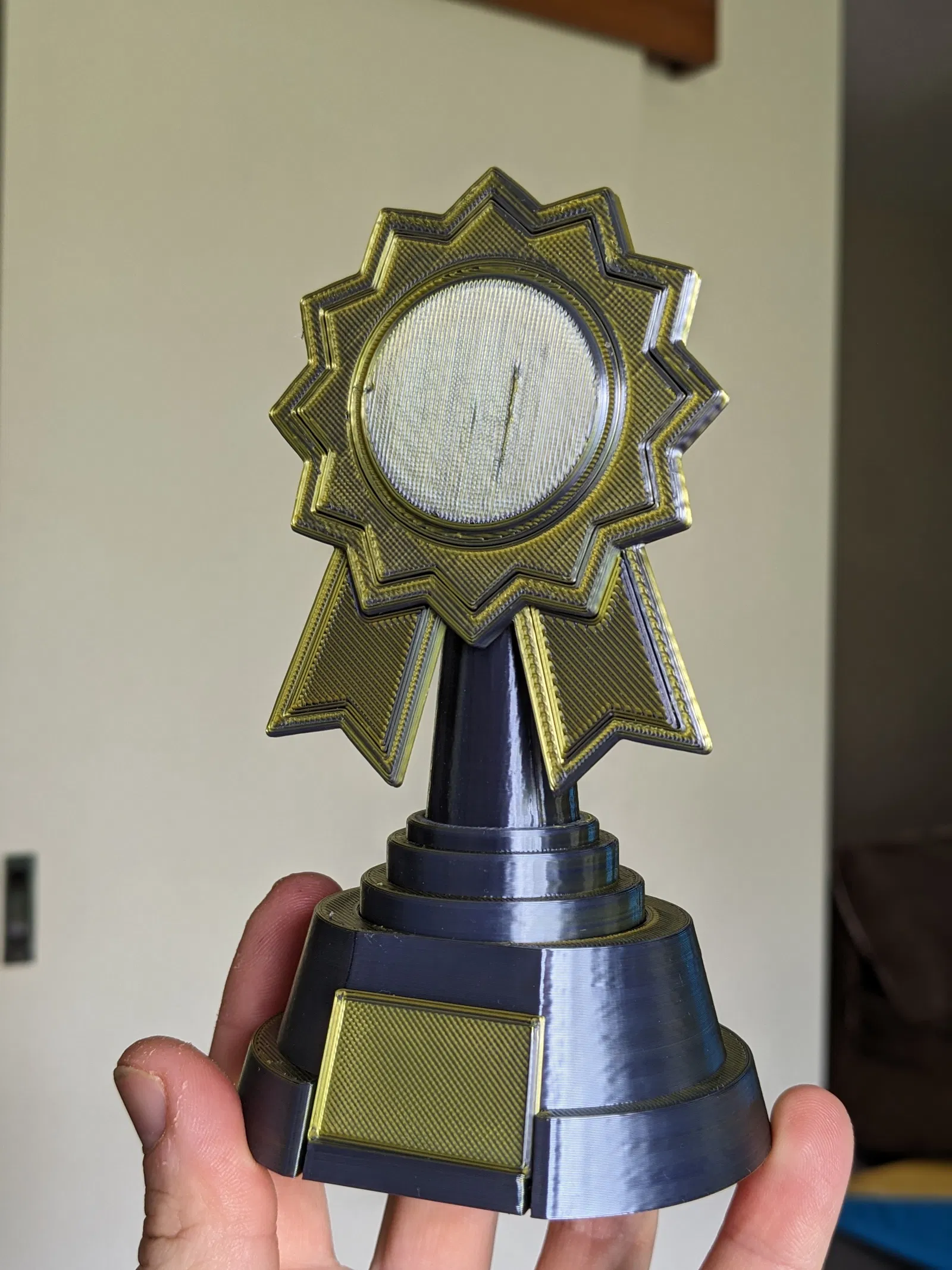Ribbon trophy là mẫu cúp ruy băng đơn giản để in tặng người chiến thắng. Thiết kế tolerance 0.10 nên máy in đã tune tốt sẽ ráp dễ, các chi tiết in supportless. Hiện cần dùng keo để lắp ráp.