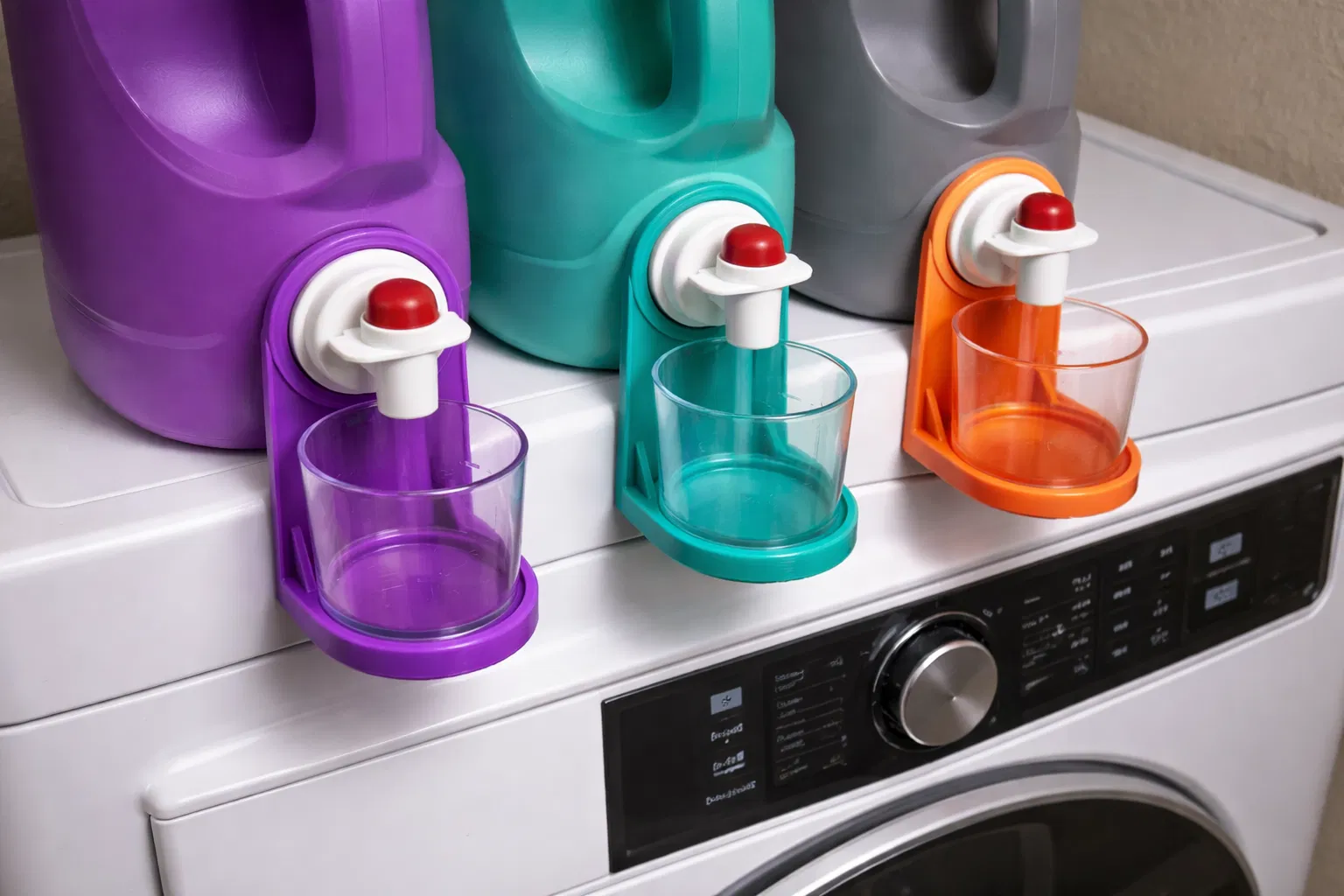 Bộ “Detergent Cup and Cup Holder” giúp đặt cốc đong bột/nước giặt gọn gàng, hạn chế đổ tràn xuống sàn. Nếu bạn chỉ cần một cái beaker/cốc đong kèm chỗ để, mẫu này là lựa chọn phù hợp.