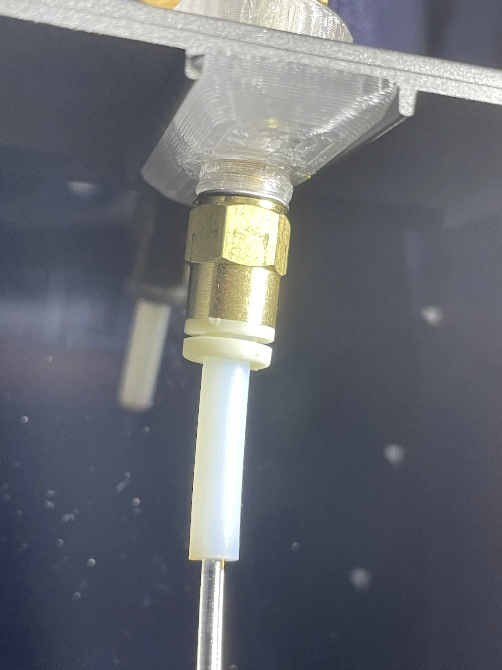 Khi bạn vặn các PTFE fittings vào thì nó sẽ kẹp chặt hơn nhiều. Cuối cùng, mình muốn thêm khả năng vặn fittings để cố định ống PTFE cho chắc; các fittings sẽ tự cắt ren của nó.