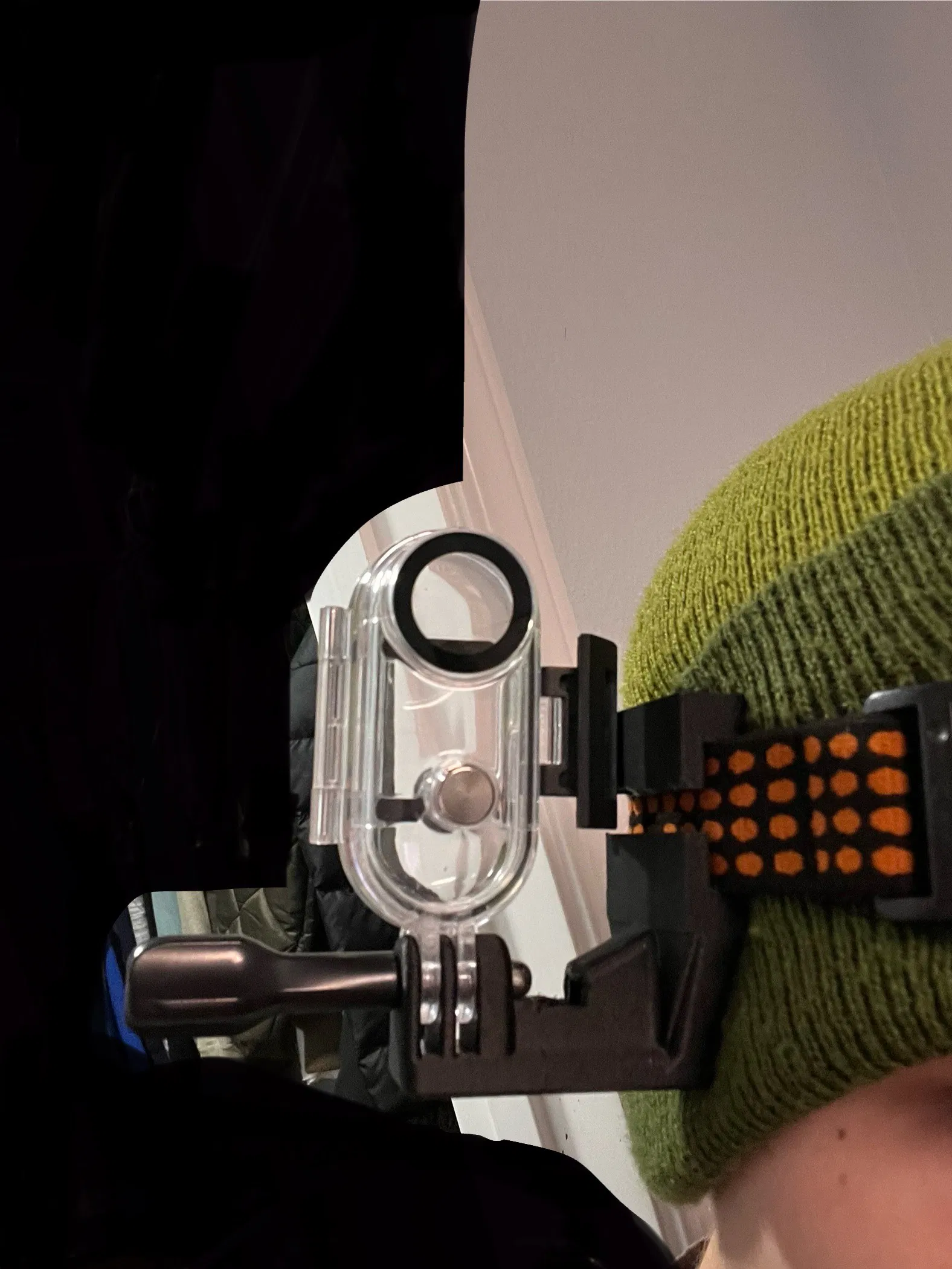 Mẫu được resize và chỉnh form để vừa với dây kính trượt tuyết hẹp hơn, giúp bám chắc và ổn định hơn khi chạy. Mount trượt vào dây đeo rất chắc, hỗ trợ ngàm GoPro tiêu chuẩn, giữ camera nằm ngay giữa để quay POV gọn đẹp mà không cần khoan hay chỉnh sửa vĩnh viễn lên kính.