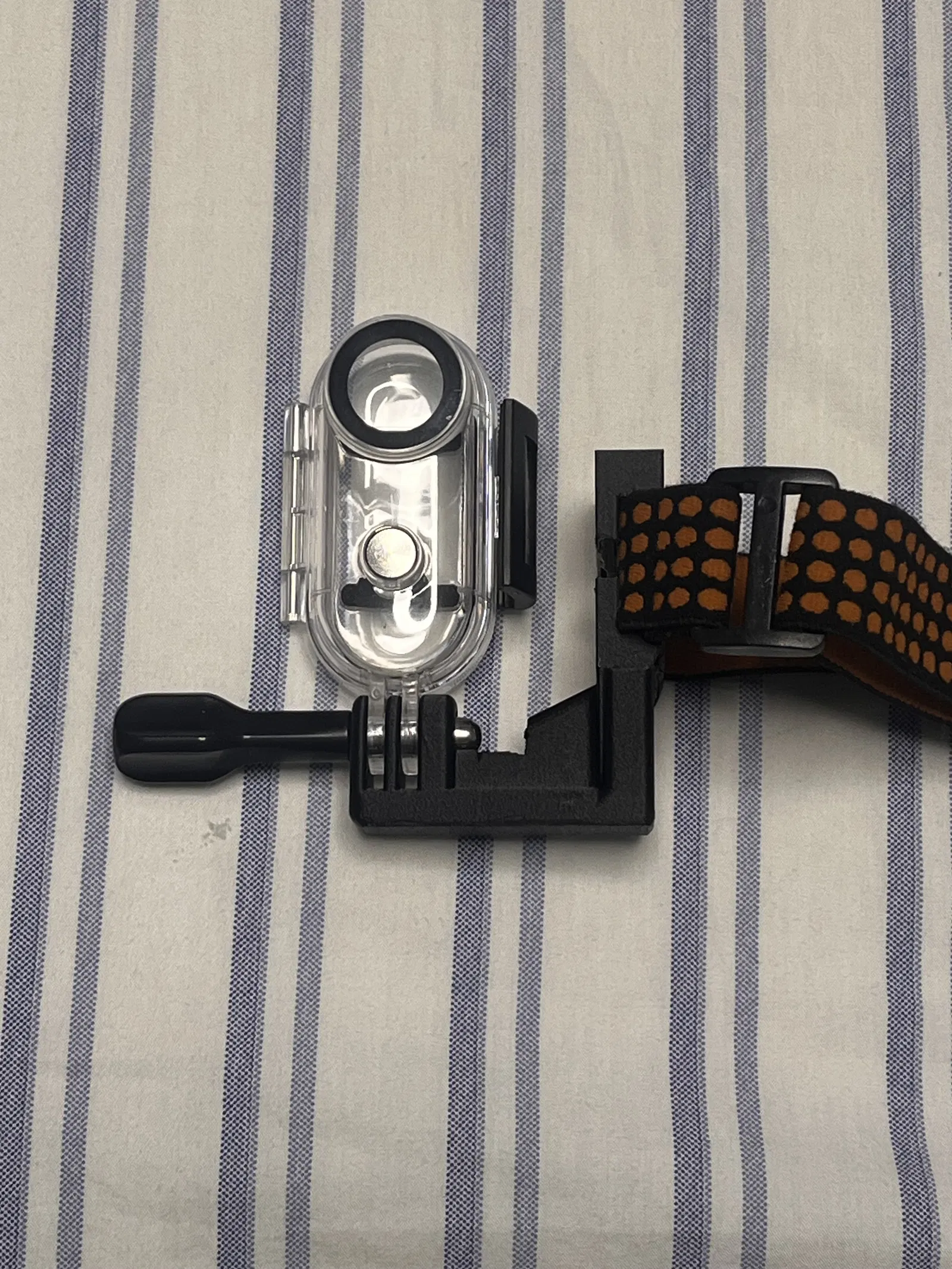 Đây là một mount GoPro được thiết kế lại, ban đầu dựa trên mẫu Paintball Goggle mount từ Printables, rồi chỉnh sửa riêng cho kính ski/snowboard dùng dây đeo 25mm.