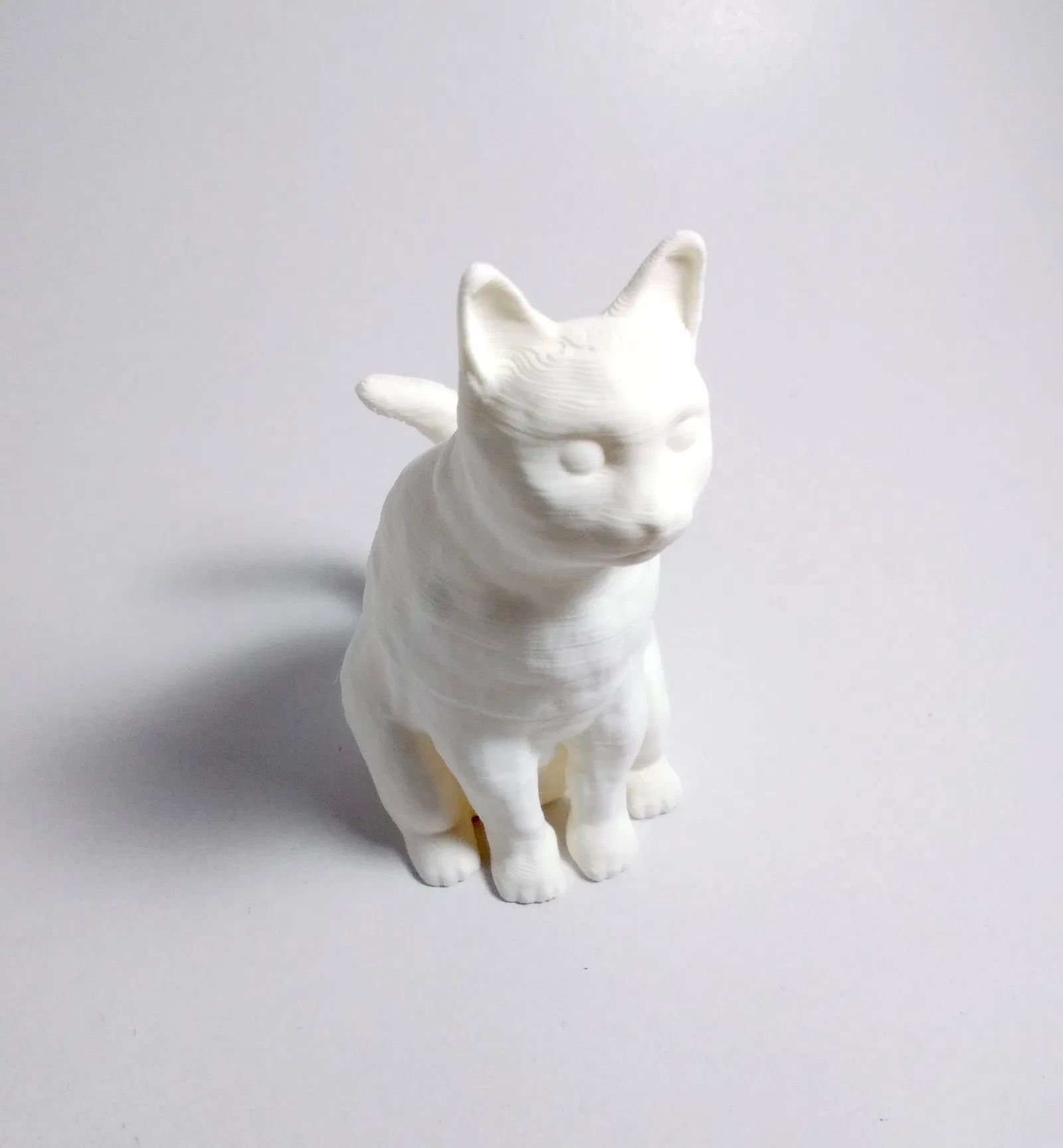 Mẫu 3D mèo ngồi được điêu khắc bằng Blender. File STL có chiều cao khoảng 103 mm. Hình minh họa là phiên bản in đã scale xuống 75%, phù hợp để thử in nhanh và trưng bày.