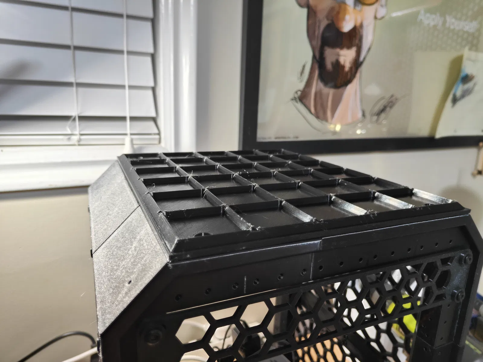 Chán cảnh phần nóc để trống làm lộ ra mớ dây cáp rối như tơ vò chưa? Gắn thêm một lưới gridfinity 5x6 để có thêm chỗ lưu trữ!