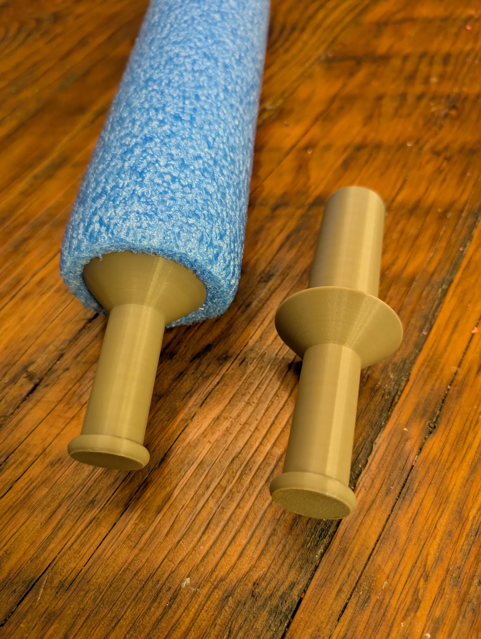 Mẫu tay cầm giúp biến một đoạn pool noodle thành cây baton cho trẻ em. Kích thước: phần cắm 30mm, tay cầm 22mm. Có 2 lựa chọn cỡ tay: Regular 51mm và Long 75mm.