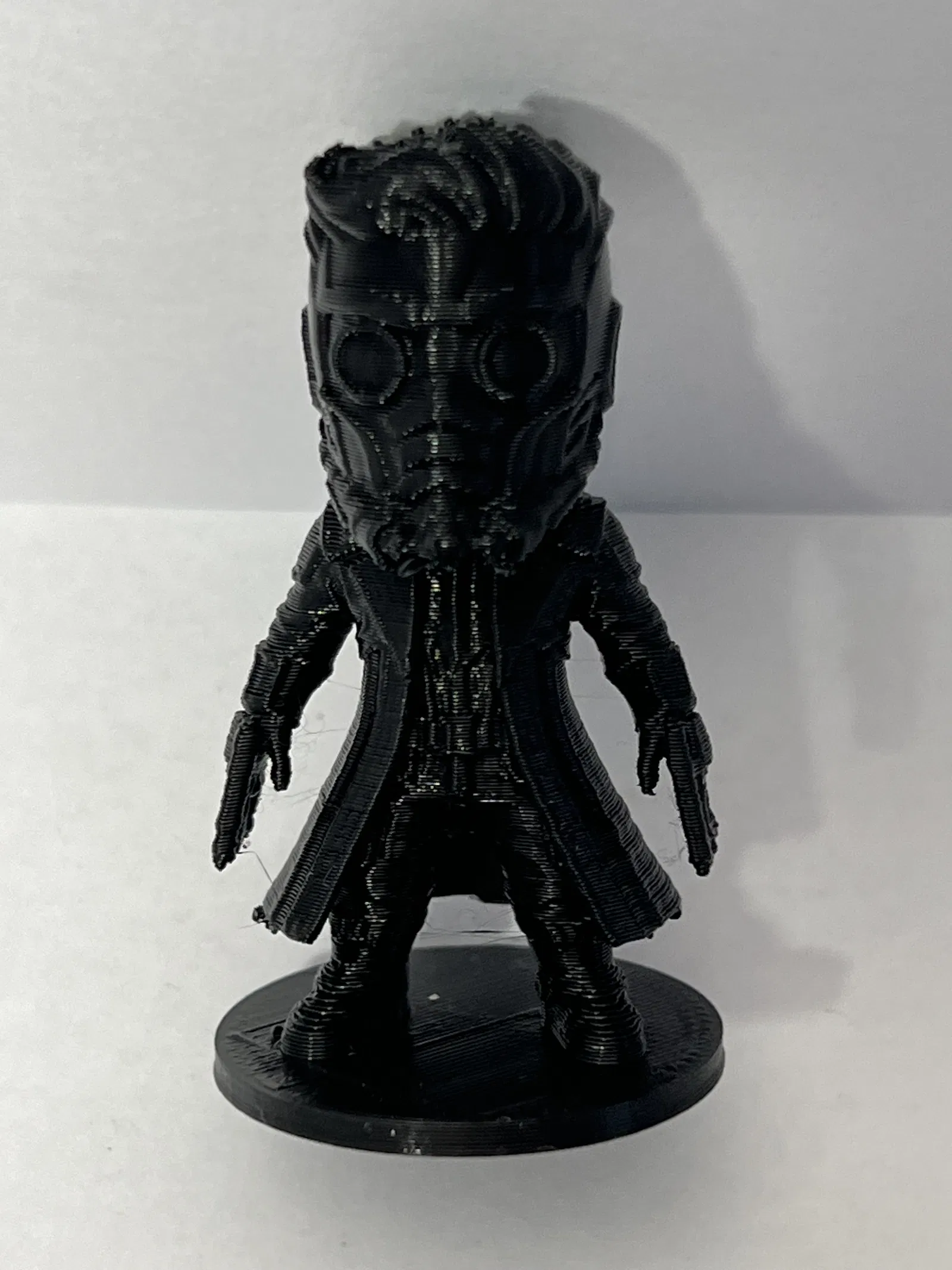 Mẫu tượng 3D Chibi Star Lord (Guardians Of The Galaxy) được AI tạo. Tác giả in trên máy in hơi cũ, ưu tiên cân bằng chất lượng/thời gian; thường in kích thước nhỏ nên ảnh macro có thể lộ lỗi. Hình chỉ minh họa.