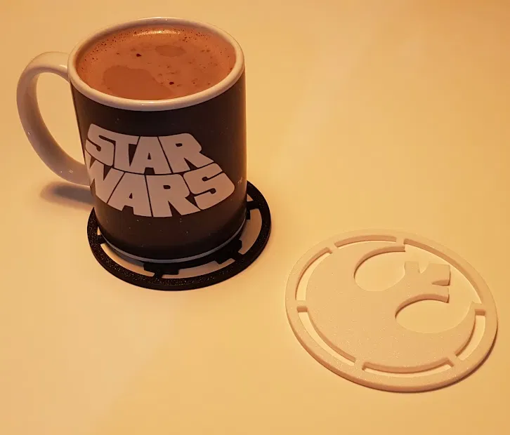 Bộ lót ly chủ đề Star Wars gồm kiểu Imperial & Rebel/Alliance, kèm giá đựng 4 hoặc 6 cái. Thiết kế in đẹp với màu đơn, không cần multi-color. Kích thước mỗi lót ly Ø100 x 4mm.