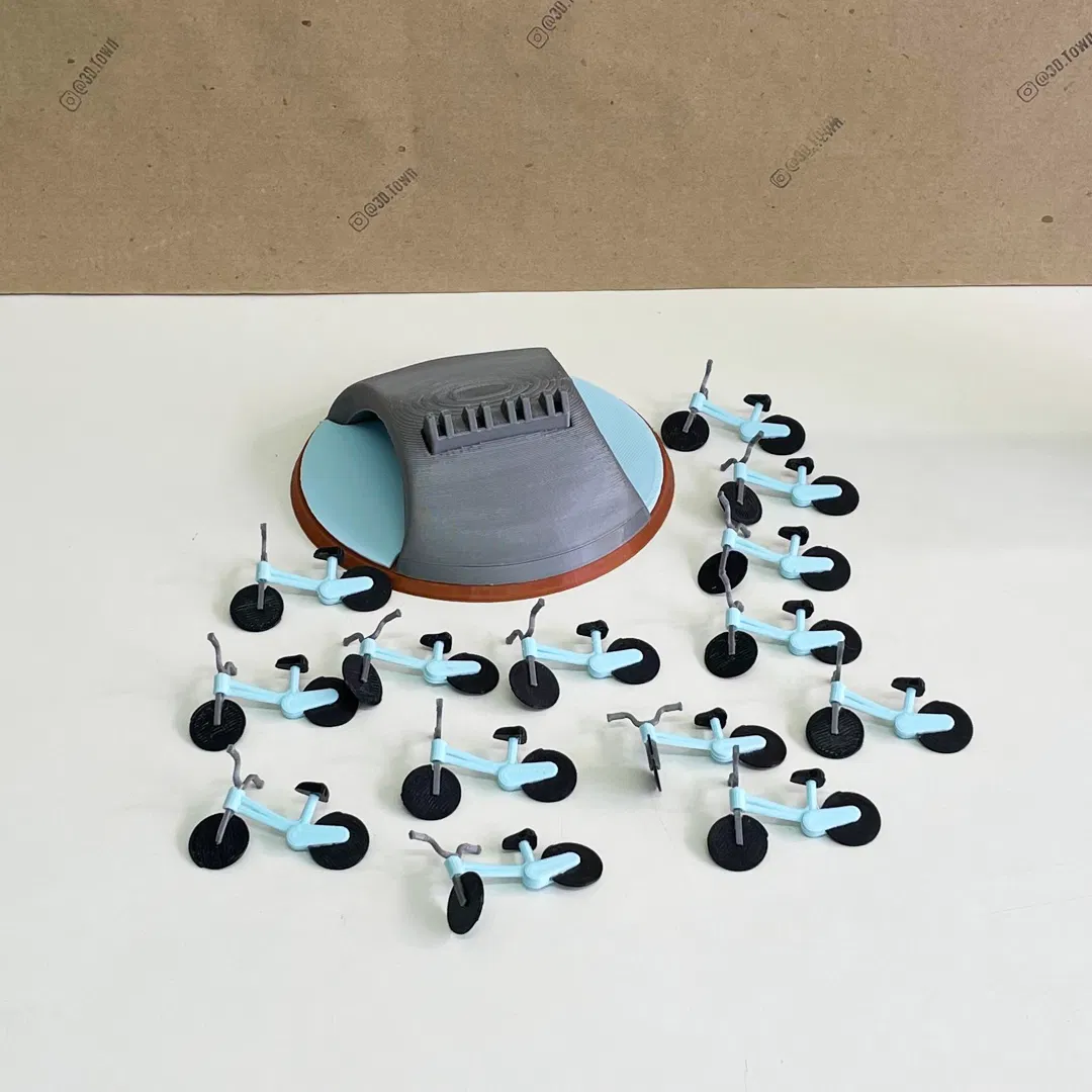 Trò chơi xếp chồng kiểu Jenga với xe đạp: đặt từng chiếc lên bệ, ai làm đổ là thua. Thử xem bạn có thể xếp chồng được bao nhiêu chiếc mà vẫn giữ thăng bằng.