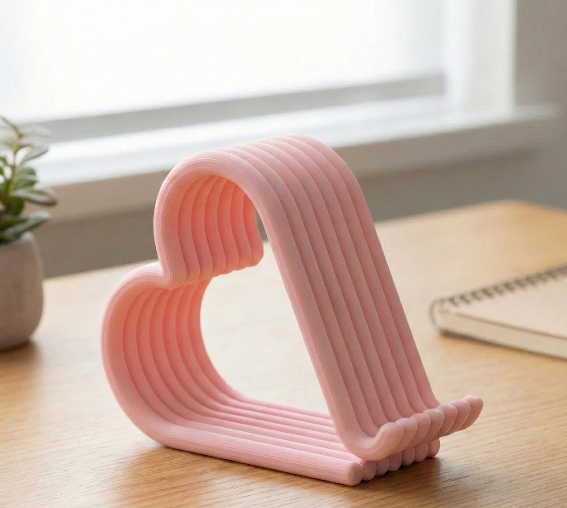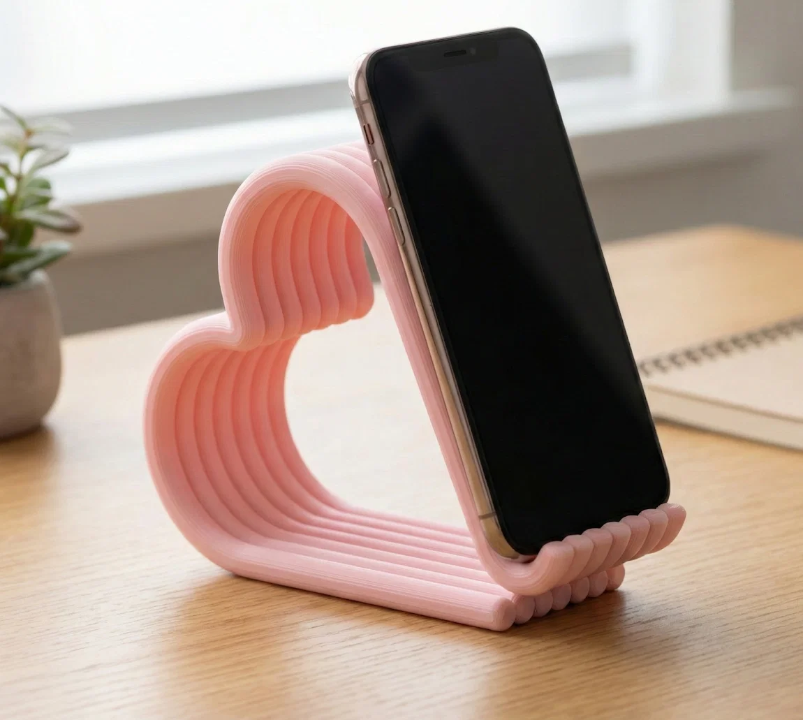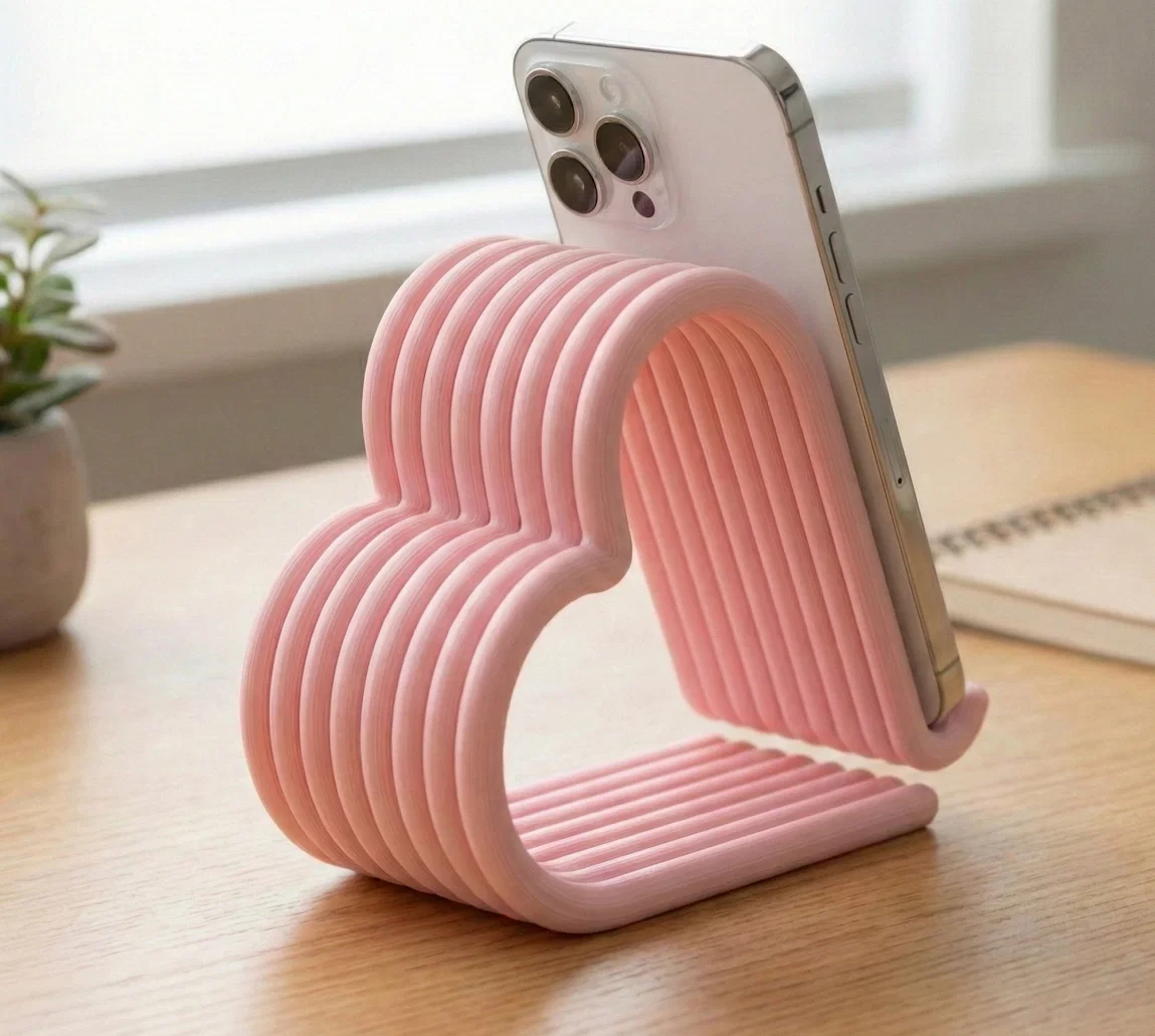 Giá đỡ điện thoại tối giản, vừa dễ thương vừa tiện dụng. In nhanh, không cần support, đặt điện thoại vững và hợp với đa số smartphone. Dáng trái tim gợn sóng nhìn nghiêng tạo điểm nhấn hiện đại cho bàn làm việc.