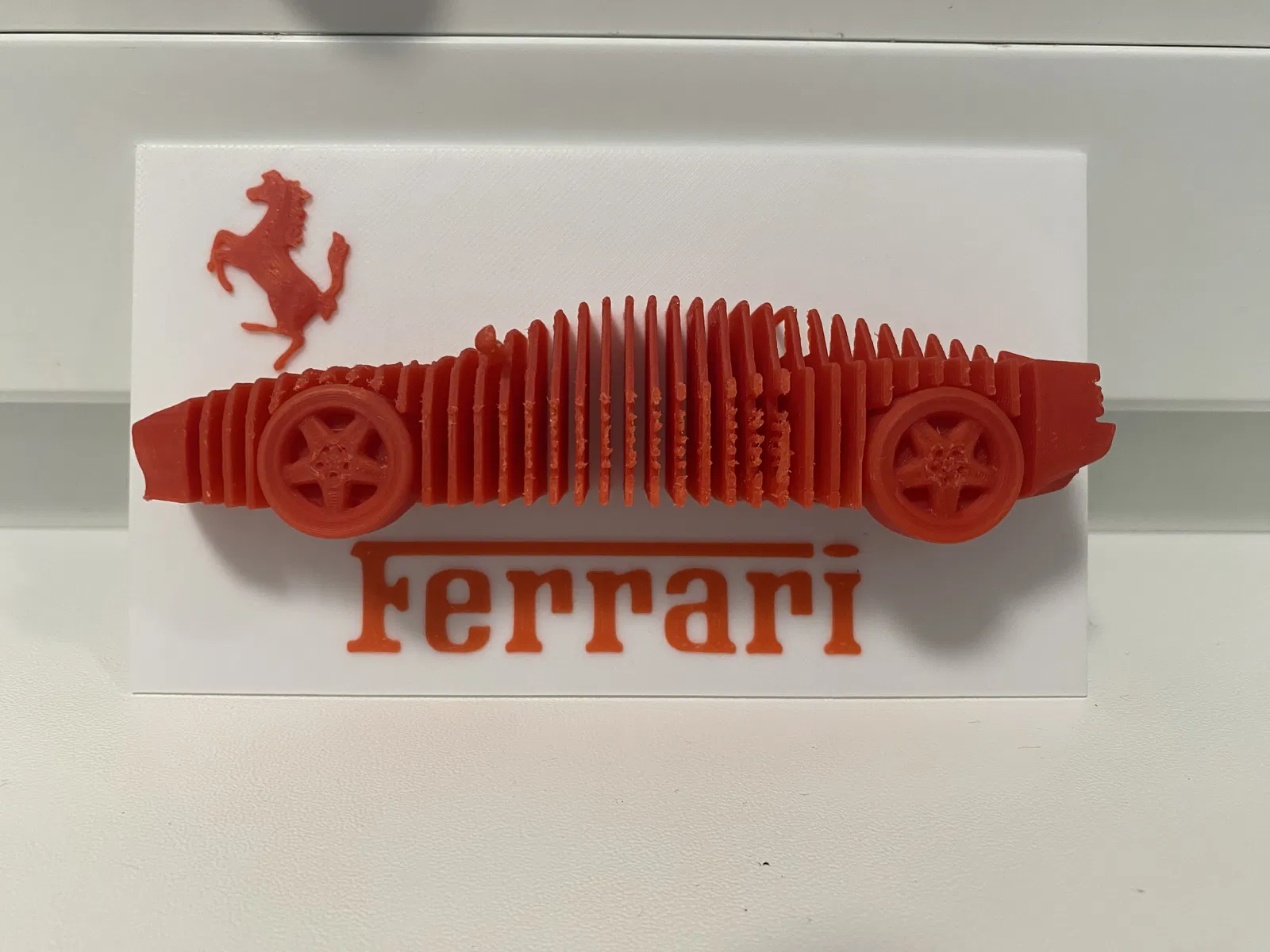 Mẫu điêu khắc layered của Ferrari Testarossa 512 (1991). Có file dự án 3MF cho nhiều tuỳ chọn in (multi color/filament swap). Khuyến nghị layer height 0.08; nozzle 0.2mm cho độ chính xác tốt hơn, gỡ supports thật cẩn thận.